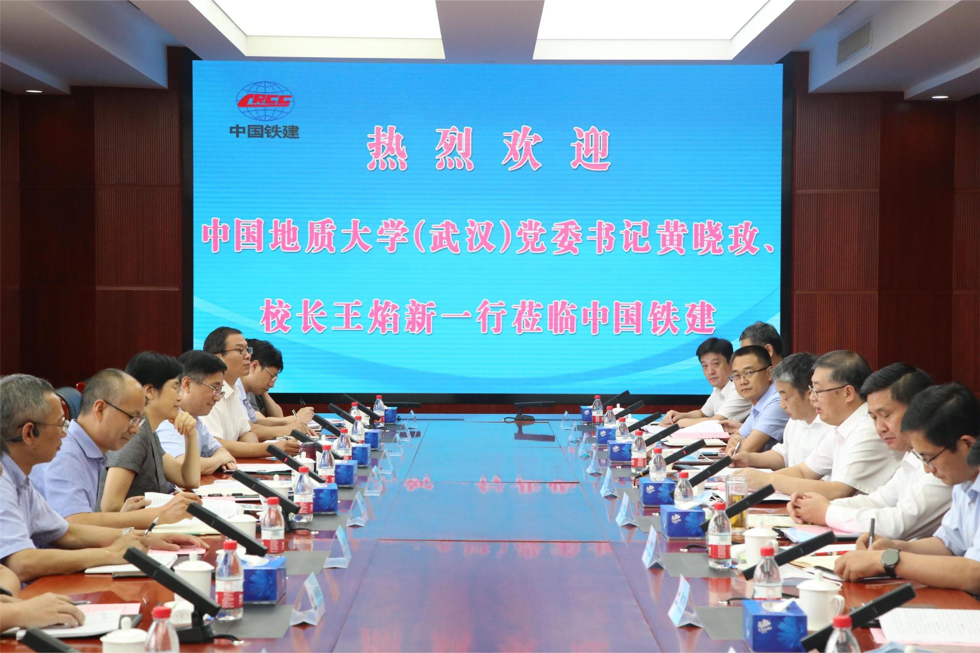 在中国铁建股份有限公司,中国铁建总裁、党委副书记庄尚标与学校领导会谈,双方就进一步深化校企合作,推动人才培养、科技攻关等方面进行深入交流并达成共识。他说,地大同中国铁建一样,经过艰苦卓绝的奋斗,创造了辉煌历史,积淀了深厚的文化底蕴。当前,中国铁建聚焦高质量发展,加快企业转型升级,希望双方在加强人才培养、技术咨询和科技成果转化等方面开展更广泛的合作,特别是依托国家重大工程项目,发挥各自优势,共同解决关键核心技术领域的“卡脖子”问题,实现合作共赢。