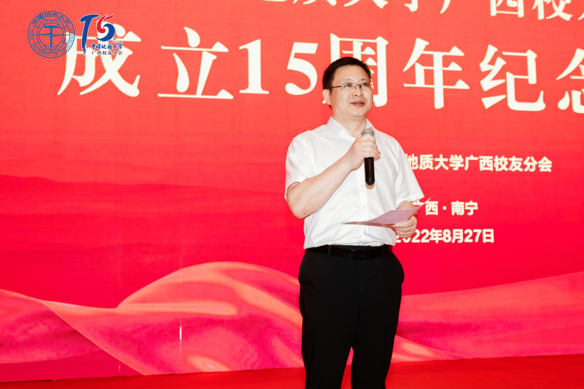 地大新闻网讯(通讯员 丁苗苗)8月27日,广西校友会成立 15 周年纪念大会暨乡村振兴高峰论坛在南宁举行。副校长刘杰,学校相关职能部门、学院代表及各地校友会代表参加大会。