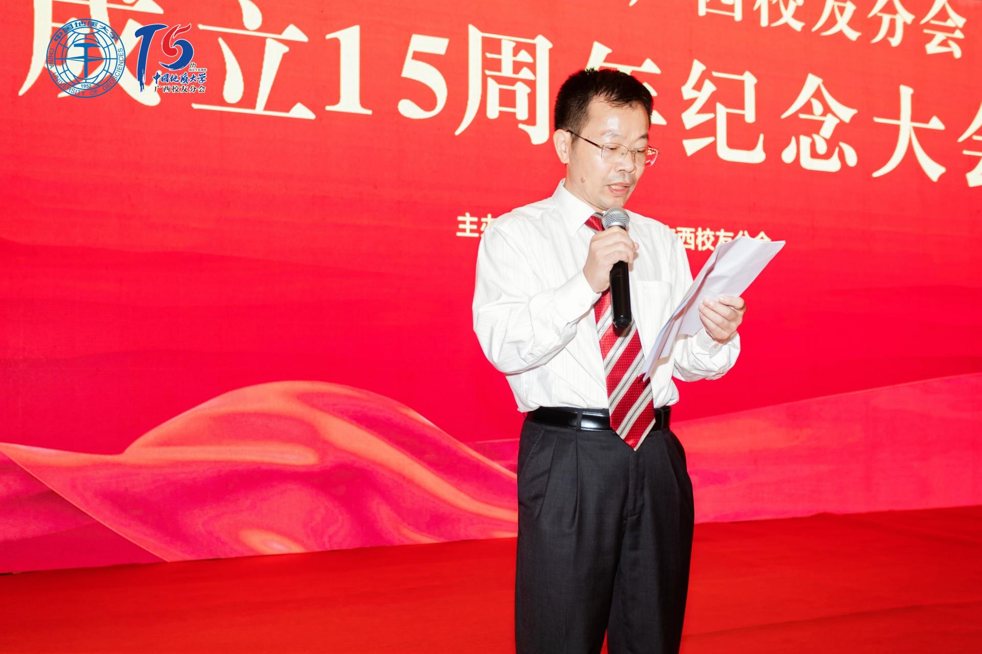 唐勇校友宣读第四届理事会选举结果,广西校友会第四届理事会由陈海校友担任会长,阳成校友、王新宇校友、罗冲校友担任副会长,唐勇校友担任秘书长。