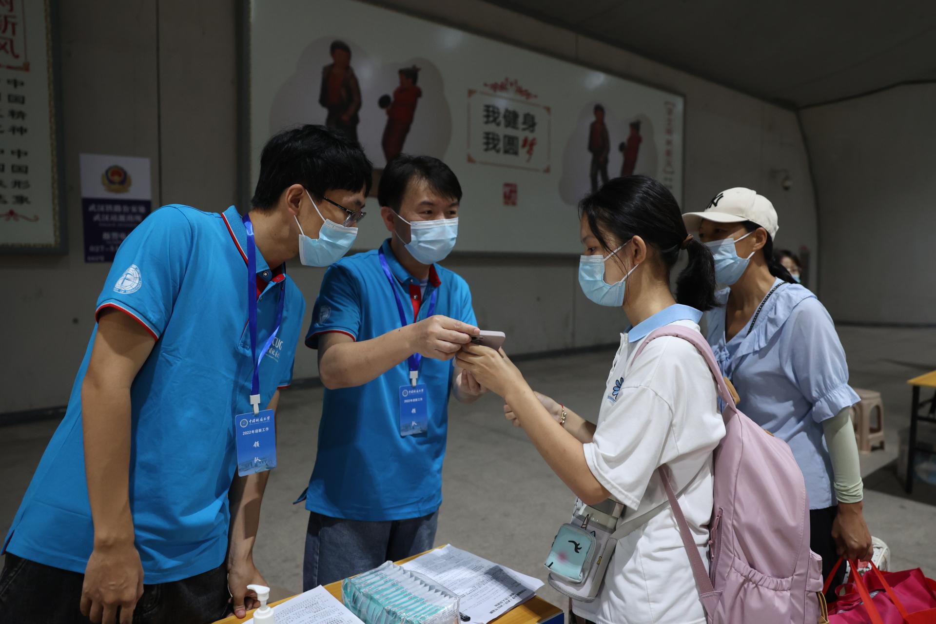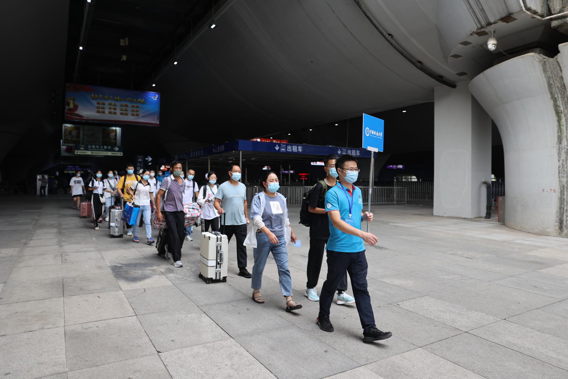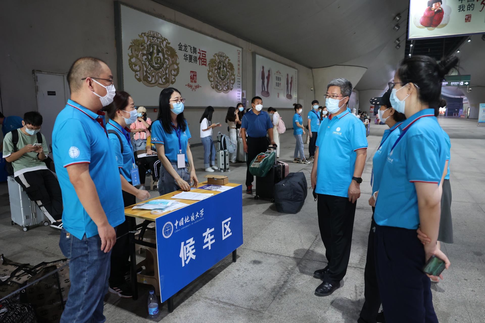 为了迎接新生们的到来,身着地大蓝的173名教师党员组成的志愿者队伍和学生志愿者,早早来到武汉三大火车站,为新生们提供接站服务,消毒、引导、搬运行李,一切井然有序,一双双热情的手,温暖着新生及家长们。