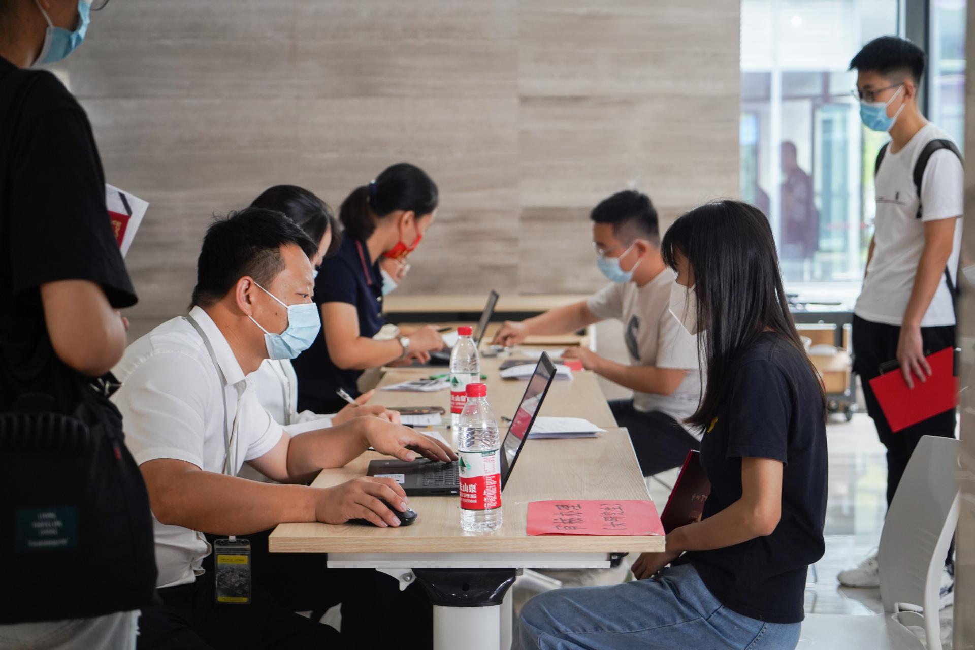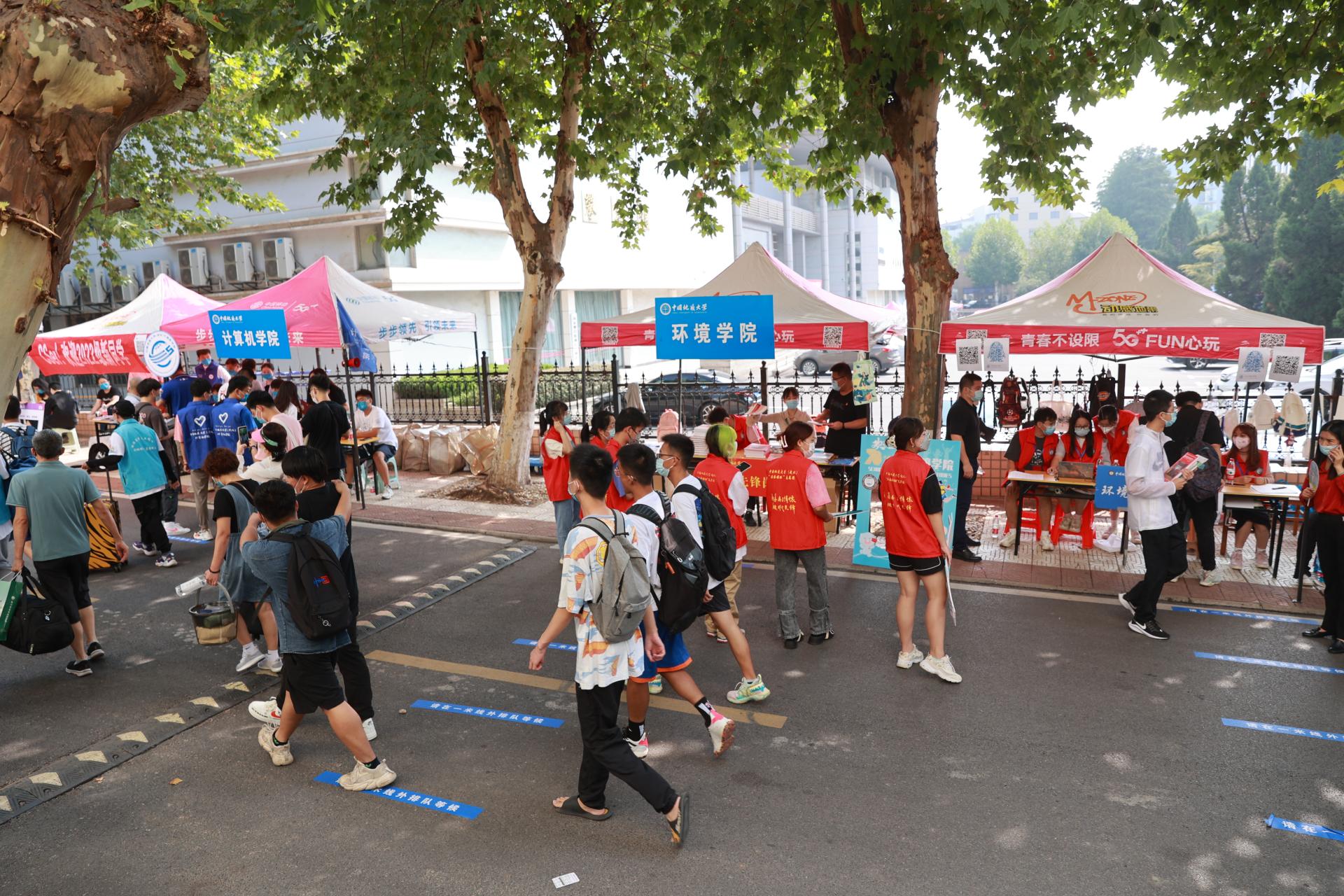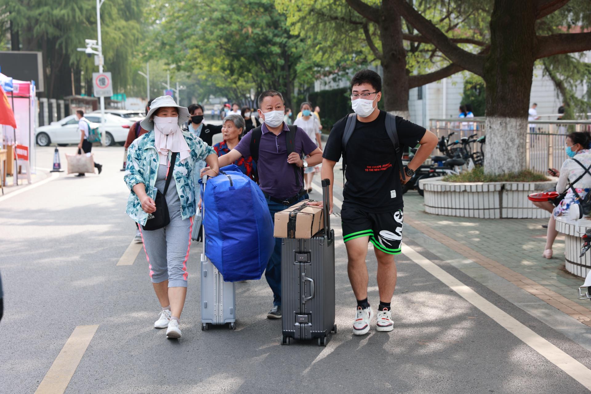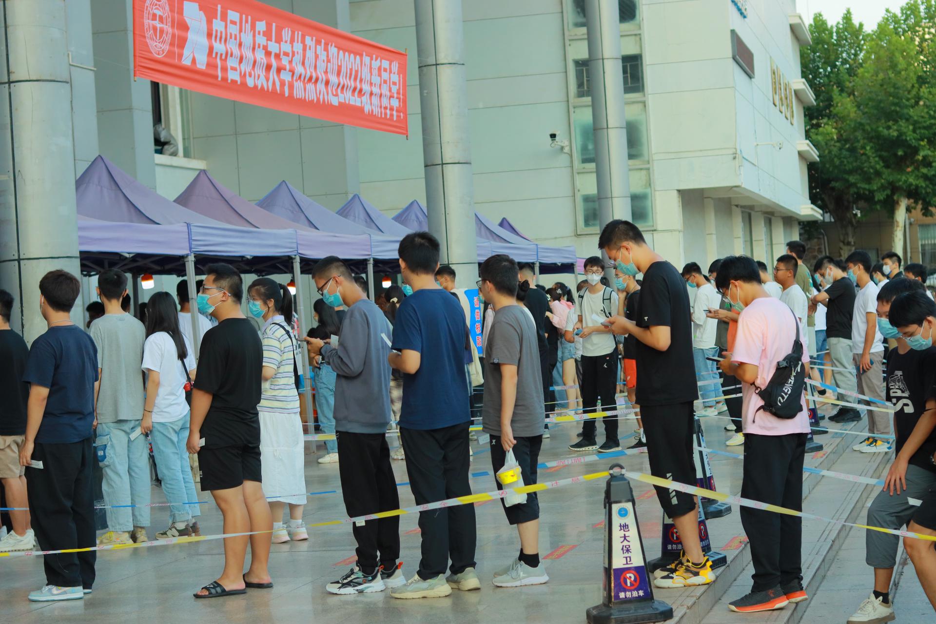 安全保卫部100余名工作人员分散在学校各处,校门口,入校前查验核酸结果、行程码,保证学子安全入园。校园内,安全保卫部、后勤保障部、校医院等单位工作人员,维护交通秩序、开展治安巡逻,做好后勤服务、医疗保障、核酸检测等工作,为迎新工作保驾护航。