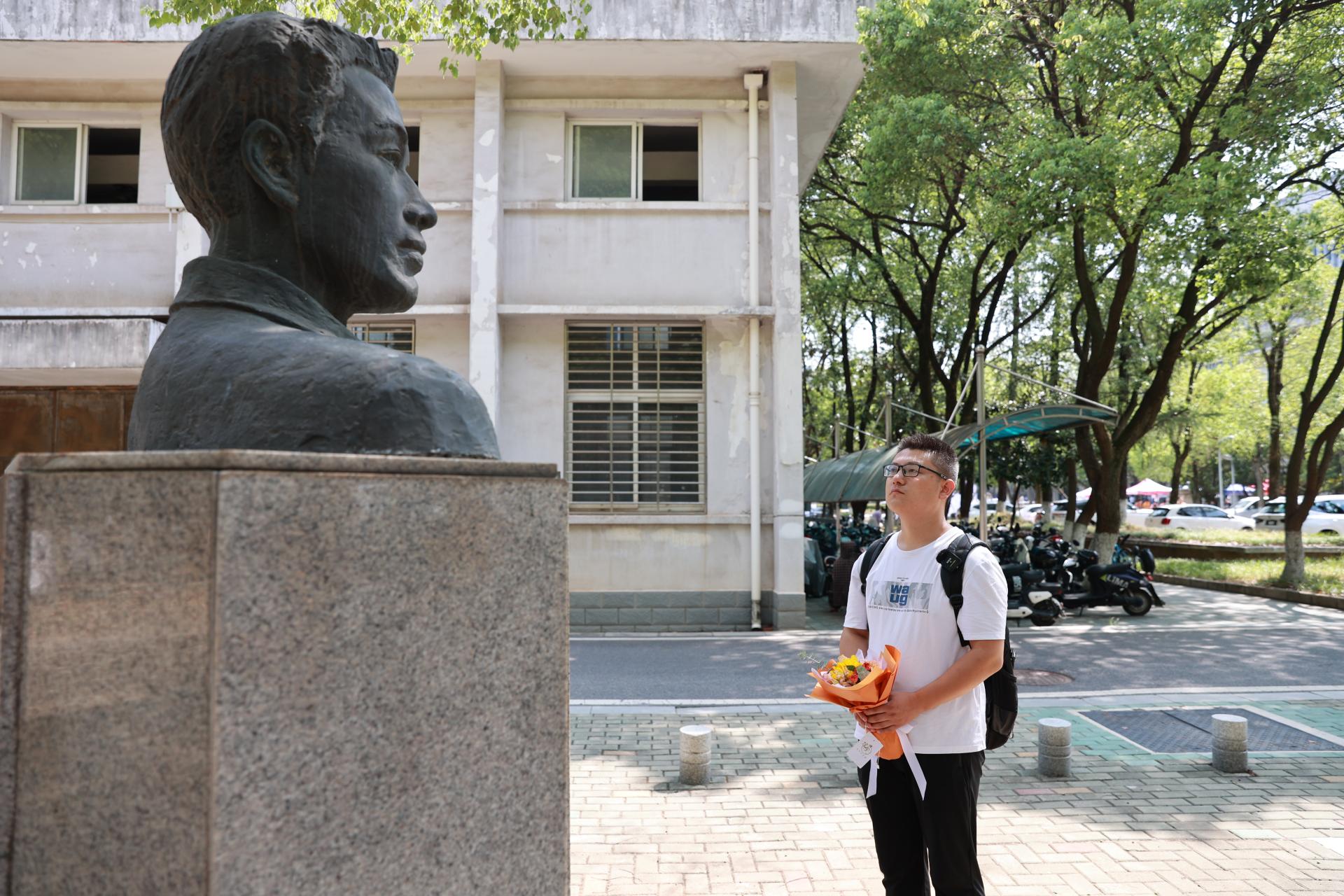今年31岁的张云飞是英雄校友张国旗之子,他今年作为2022级研究生新生入读环境学院水文地质学专业,办完入学报到手续后便加入迎新志愿者队伍。他说,希望在这个培养了父亲的地方,能够获得一些除了知识和能力之外的别样的收获,走一走他走过的地方,弥补一些从小对父亲认识上的缺失,同时,也希望自己能够将父亲和地大的这份牵绊和缘分延续下去。“我愿意追寻父亲的脚步,坚守初心,到家乡去、到基层去,助力乡村振兴,实现青春理想”。