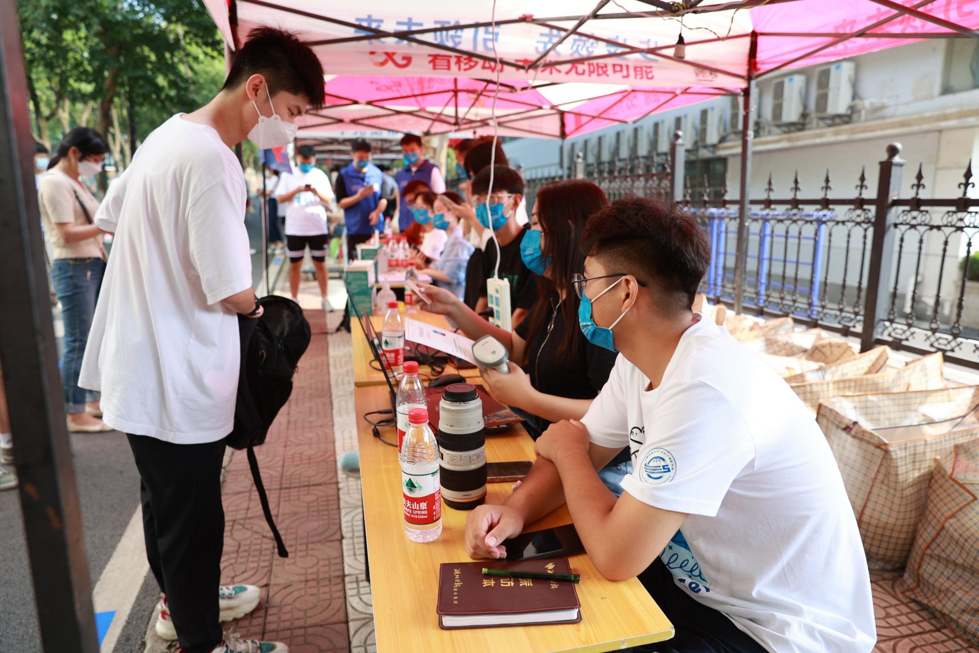 为了让新生感受到“回家”的温暖,各学院迎新点的老师、学长学姐以及校志协的志愿者们齐上阵,他们认真指引、耐心解答,帮忙运送行李,带着新生熟悉校园,提供最周到的服务。材料与化学学院2022级新生刘志国来自山东菏泽,他和姐姐一起从山东来到地大,“一进地大,老师、志愿者和学长学姐们热情的帮助让我感到非常温暖。”