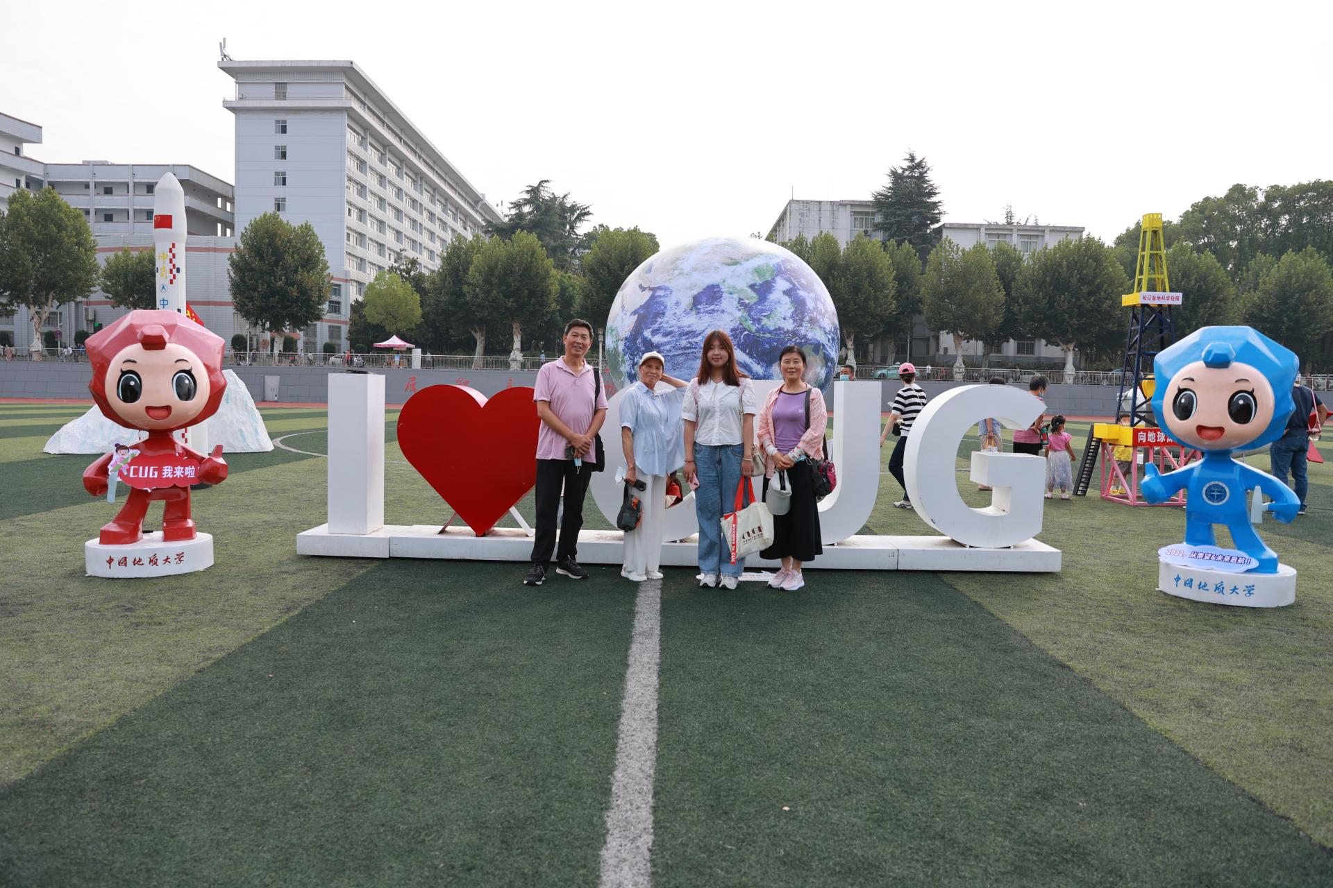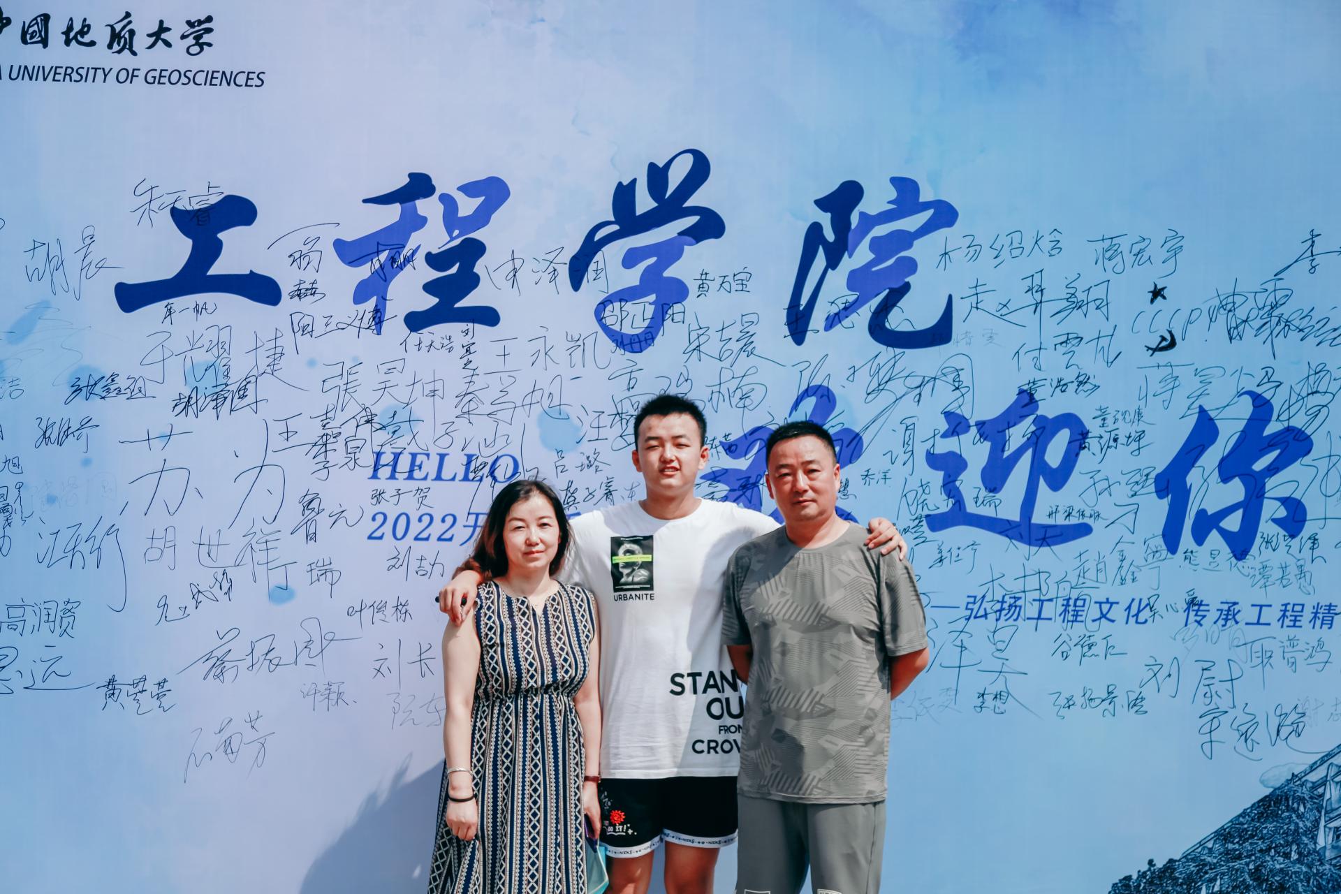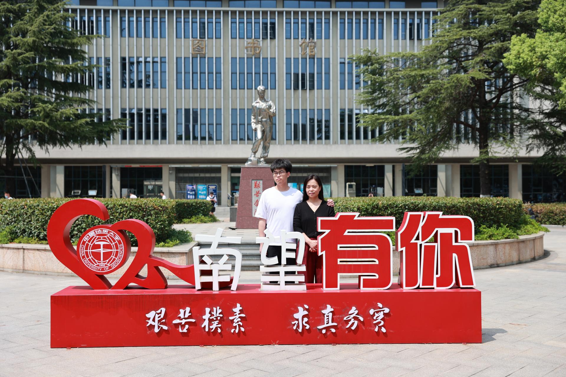来自河南的徐贵语是环境学院地下水科学与工程专业2022级新生,报到结束后,她与家人来到操场与校庆吉祥物合影。她说,很幸运能在70周年校庆前夕考入地大,看到地大的美景感到心情愉悦。她说:“全球可用水资源短缺是当今现状,从初中时我便暗暗下决心要为利用好水资源做出贡献,六年的奋斗,让我来到这里,让我们接续奋斗,一起共创美好家园!”