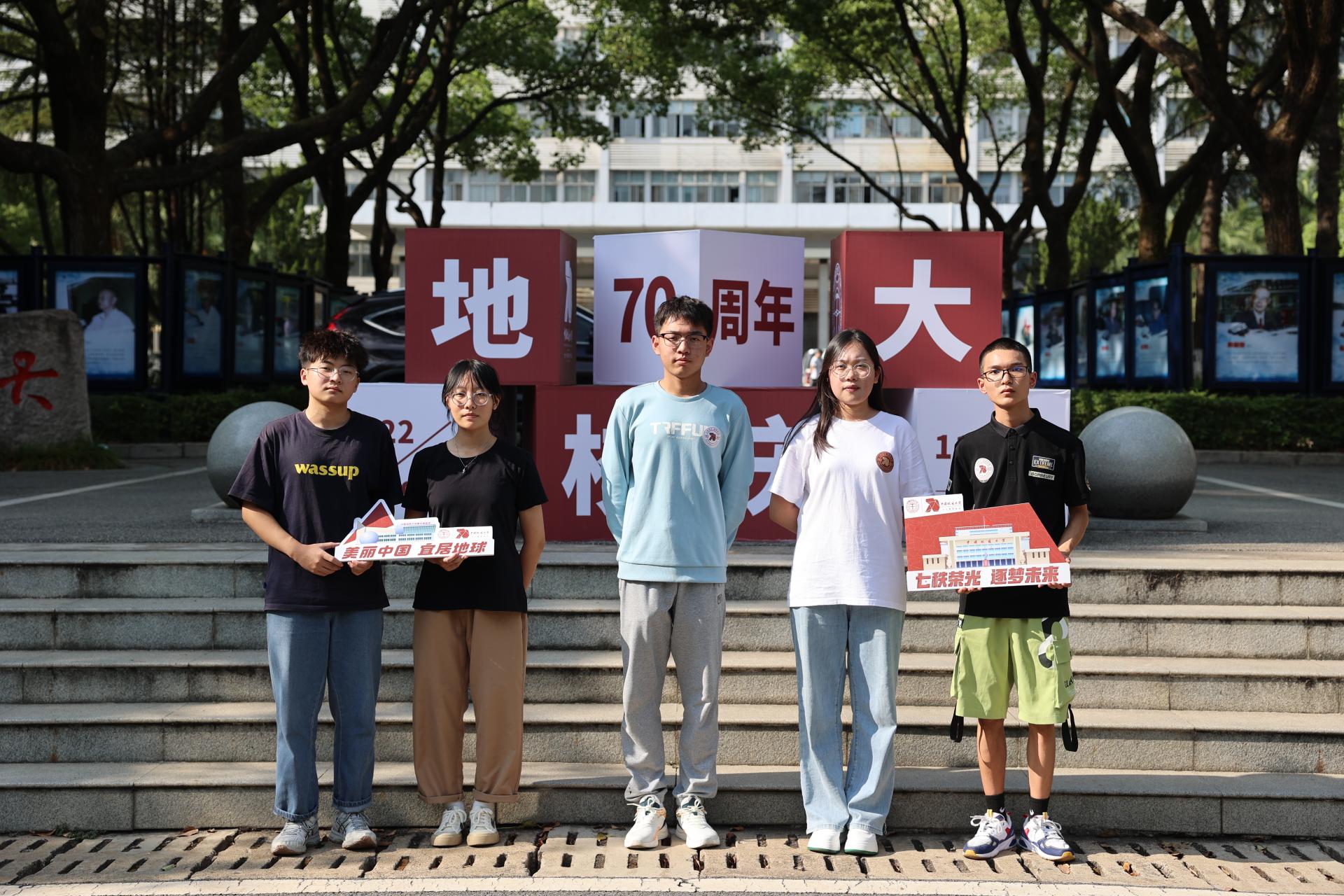 暑热褪去,秋高气爽,今年是地大70周年校庆,今天的地大携以盛装,热闹非凡,迎接着萌新CUGers。院士长廊的校庆景观迎来一波波合影打卡,操场上展示着“上天入地下海登极”景观和校庆吉祥物,