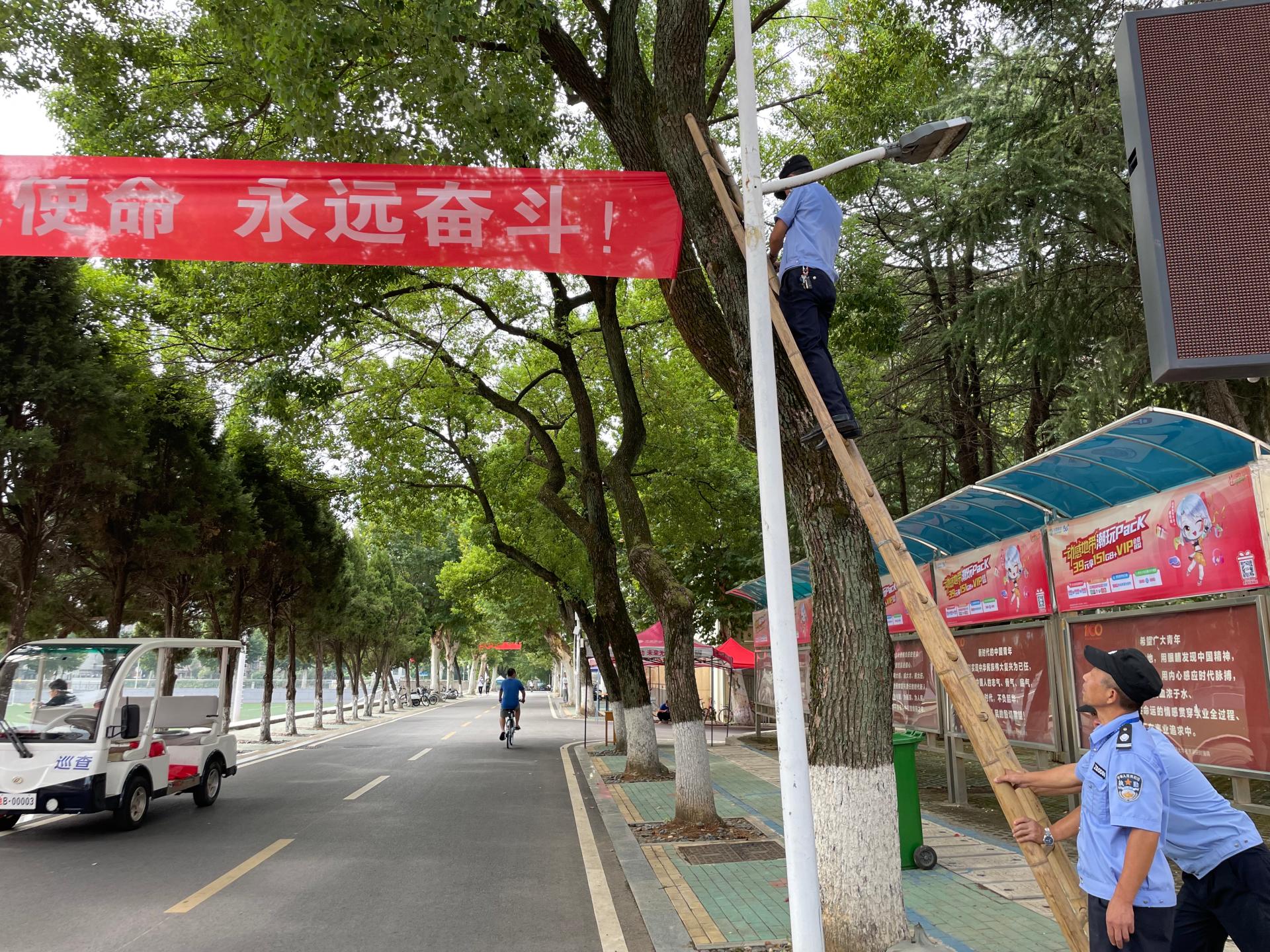 为做好疫情常态化精准防控工作,从暑期至今,物业服务中心对校园各处进行环境整治,加强公共区域、道路设施以及楼宇内部重点区域的日常保洁力度和消毒消杀工作,并进一步加大校园及周边巡查力度,及时清运垃圾杂物,对绿植进行整形修剪。为优化迎新工作,在校园东、西、北三个区域悬挂迎新条幅41条,设置标识牌42个,协助搭建帐篷43顶。