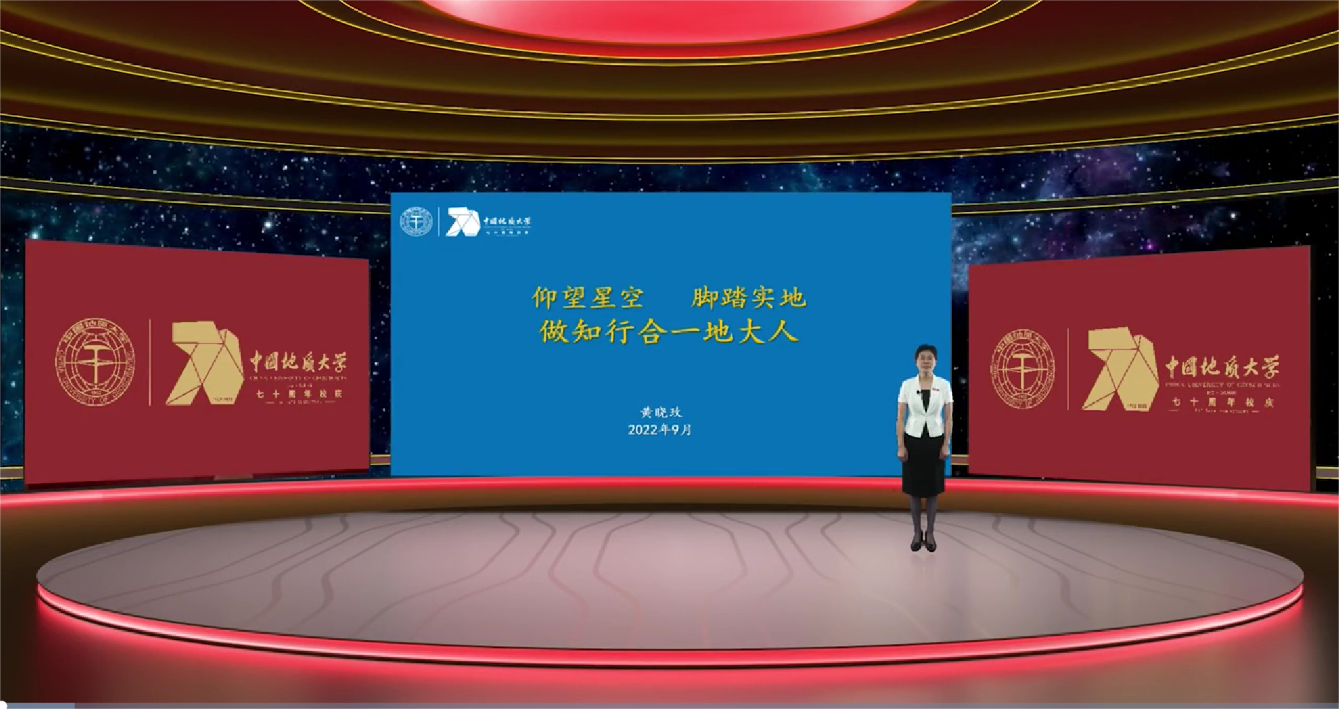 地大新闻网讯(通讯员 王渊 苏洪涛)9月9日,校党委书记黄晓玫以“仰望星空,脚踏实地,做知行合一地大人”为主题,为4814名本科新生讲授“开学第一课”。黄晓玫代表学校对全体新同学表示欢迎,她带领同学们回顾了学校70年发展的历史进程,从“在仰望星空中树立远大理想”“在脚踏实地中练就过硬本领”“在知行合一中成就精彩人生”三个方面为同学们讲授课程内容。