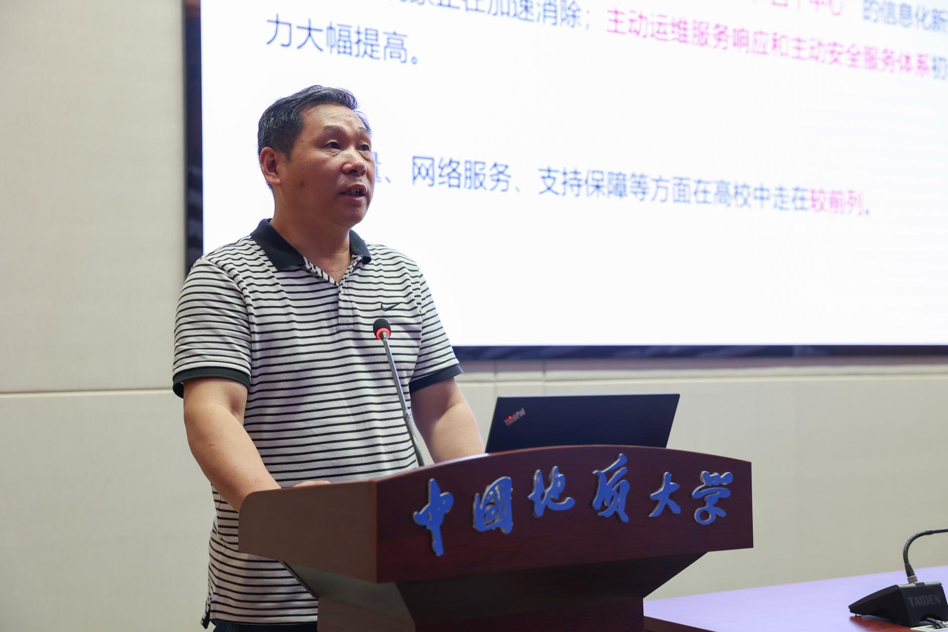 地大新闻网讯(通讯员 高浪 摄影 刘文涵)5月31日,学校在南望山校区东区教学综合楼A0116会议室召开网络安全和信息化素养提升专题培训会。网络安全和信息化工作领导小组成员、各二级单位信息化工作分管领导参加会议。校党委副书记王林清主持会议。