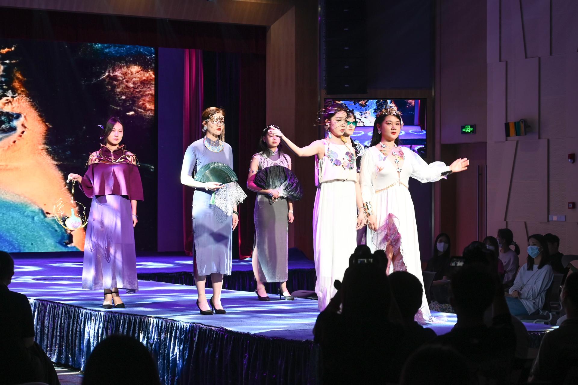 整场比赛,有9支队伍,50套系列,上千件首饰与服装作品登台。参赛队员来自我校12个学院,包括巴基斯坦、坦桑尼亚的留学生。学生模特们为观众们带来了古法琉璃、折扇、古乐、灯笼、丝竹、编织、诗词、书法等元素的首饰设计与服装搭配T台展演。观众们在美轮美奂的作品和精彩纷呈的配乐中“漫步”,现场气氛热烈,掌声雷鸣。