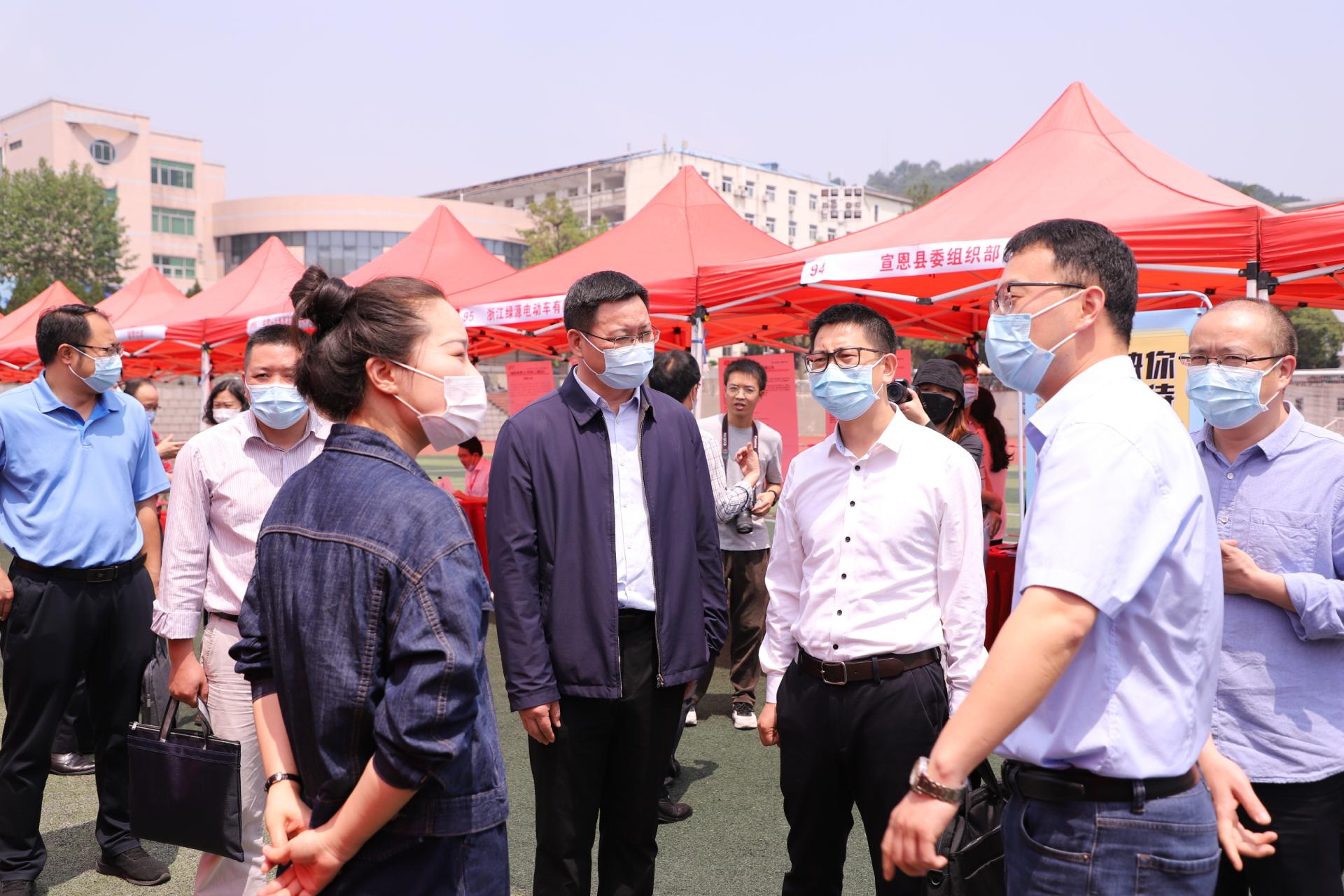 会议结束后,尹云波一行赴招聘会现场指导工作。他对招聘会的组织和开展给予了高度评价,对毕业生积极求职的状态、现场热烈的氛围表示认可,同时深入了解用人单位招聘需求,与恩施宣恩县委人才办、浙江省第十一地质大队的招聘负责人进行交流,听取用人单位对高校人才培养、就业实习等方面的建议,并希望各用人单位不断加大来校人才招聘力度,进一步深化校企合作。