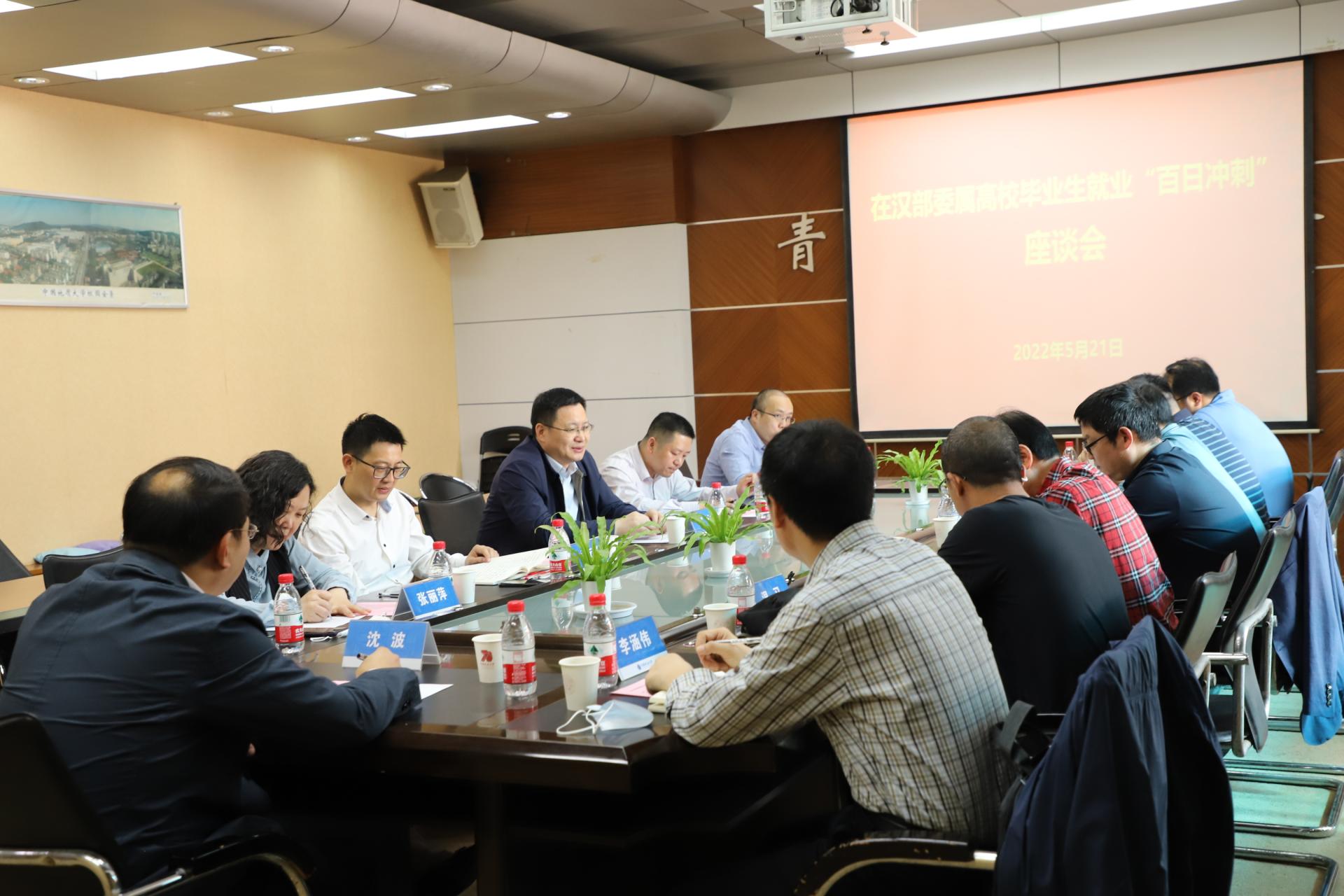 地大新闻网讯(通讯员 彭鑫)5月21日,2022年春季在汉部属高校研究生、本科生双选会暨在汉部委属高校毕业生就业“百日冲刺”座谈会在我校举办。湖北省高校毕业生就业指导中心主任尹云波、副主任张丽萍,我校副校长刘杰,武汉大学、华中科技大学等高校和中研博硕英才网相关就业工作负责人参加座谈。本次活动由在汉教育部直属高校毕业研究生就业工作协作组(简称“协作组”)主办。