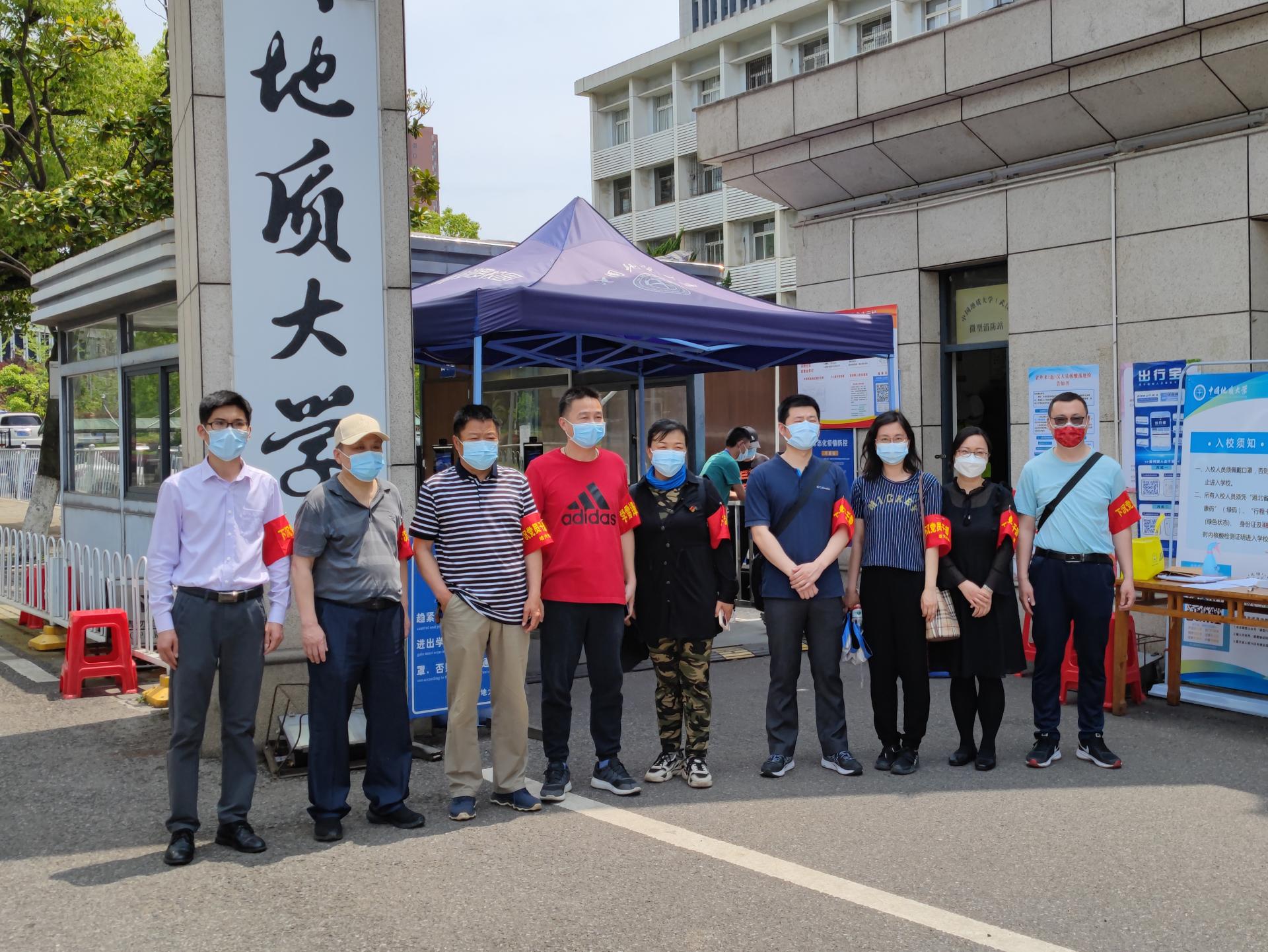 地大新闻网讯(通讯员 宋超 彭冠军 摄影 许微)近日,因学校周边疫情影响,校园疫情防控形势严峻,为第一时间阻断疫情向校内传播,确保广大师生员工生命健康和校园安全稳定,校党委高度重视,统一部署,开展了一系列疫情防控工作。4月22日晚,校园疫情防控升级,校园出入口防疫压力陡增,为迅速补充校园出入口战疫力量,机关党委闻令而动,迅速组建抗疫应急突击队。23日早上七点半,10余名机关党员干部参加校园大门防控值守,配合安全保卫部做好防疫政策宣讲、矛盾化解和信息反馈等工作,合力筑牢校园疫情防控网。随后,学院、直属单位的党员干部主动请缨,纷纷加入疫情防控门岗值班志愿者队伍。4月23日至4月28日,共计67名党员干部参与学校各门岗值班146人次,用实际行动筑起师生健康安全的第一道防线。