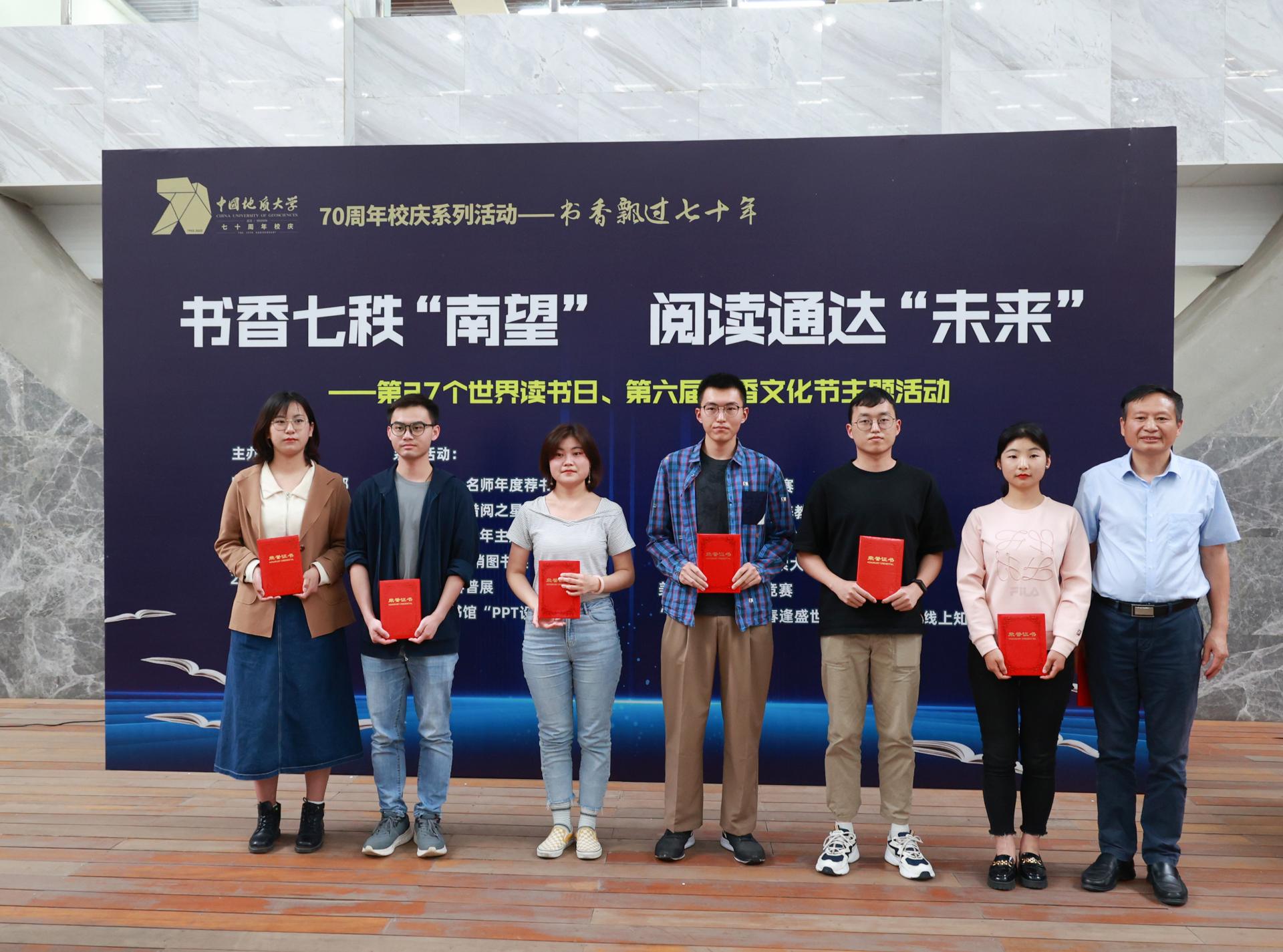活动中公布了院士、名师年度荐书名单。其中,殷鸿福推荐的书目是《古文观止》《菊与刀》《不朽》《野火集》《钢铁是怎样炼成的》《瓦尔登湖》《温家宝地质笔记》《文明的冲突与世界秩序的重建》。国家教学名师唐辉明教授推荐的书目是《书谱》《唐宋八大家》《论语》《科学的历程》《当代西方哲学》《中国通史》《世界简史》;国家教学名师龚一鸣教授推荐的书目是《地学革命风云录》《地质演化突变观》《物种起源》《平凡的世界》《爱因斯坦谈人生》《如何成为卓越的大学教师》《刘东生——揭开黄土的奥秘》《地球系统与演变》。