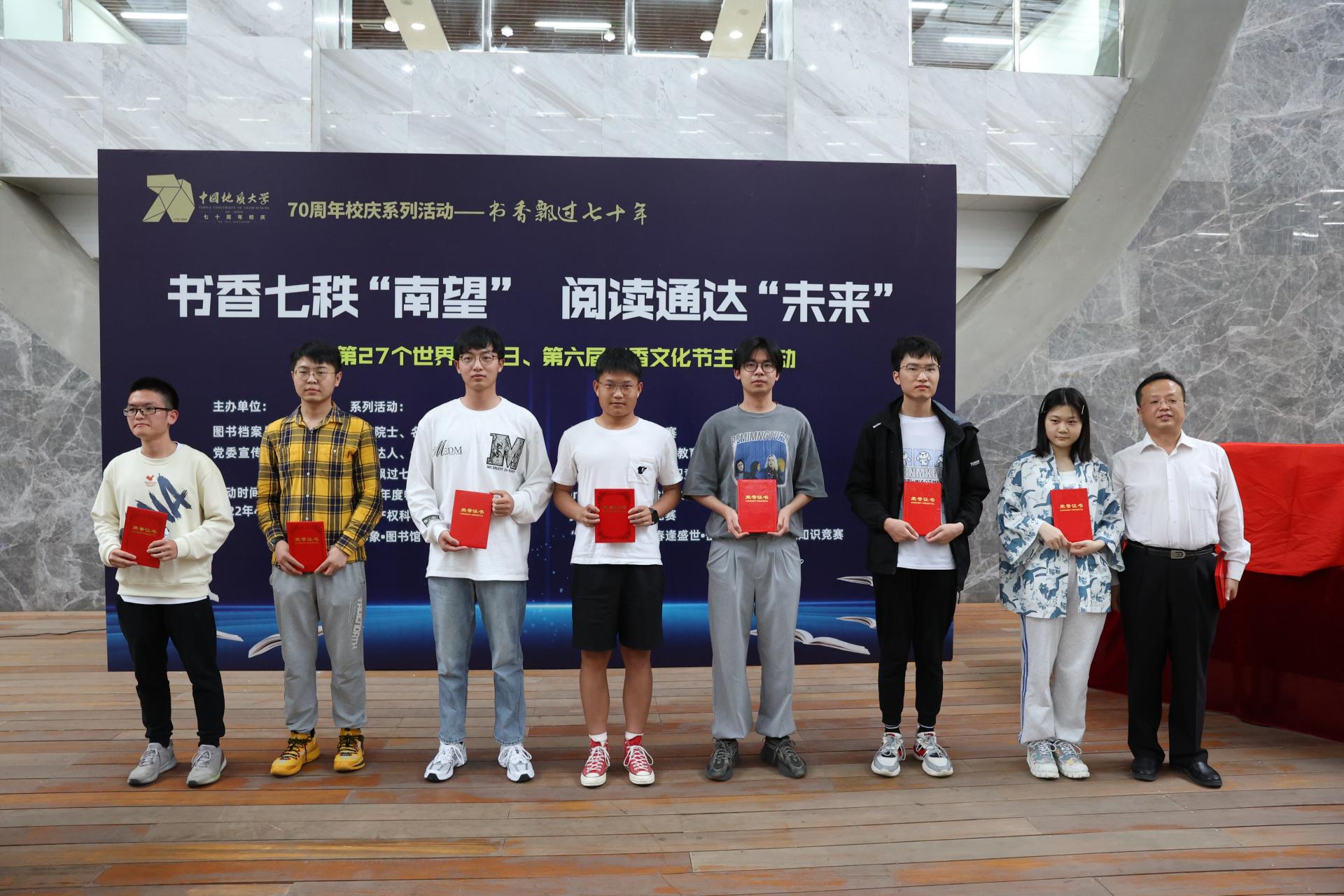 地大新闻网讯(通讯员 徐燕 刘安璐 摄影 王俊芳 梁睿华 石欣宇)4月23日是第27个世界读书日,为倡导全民阅读、浓厚书香地大氛围,迎接70周年校庆,4月22日,我校举行第六届书香文化节暨“书香飘过七十年”校庆主题阅读推广活动。中国科学院院士殷鸿福,湖北省新华书店集团有限公司董事长邱从军,副校长赖旭龙,校党委副书记王林清,校党委常委、宣传部部长储祖旺,相关单位负责人以及学生代表参加活动。