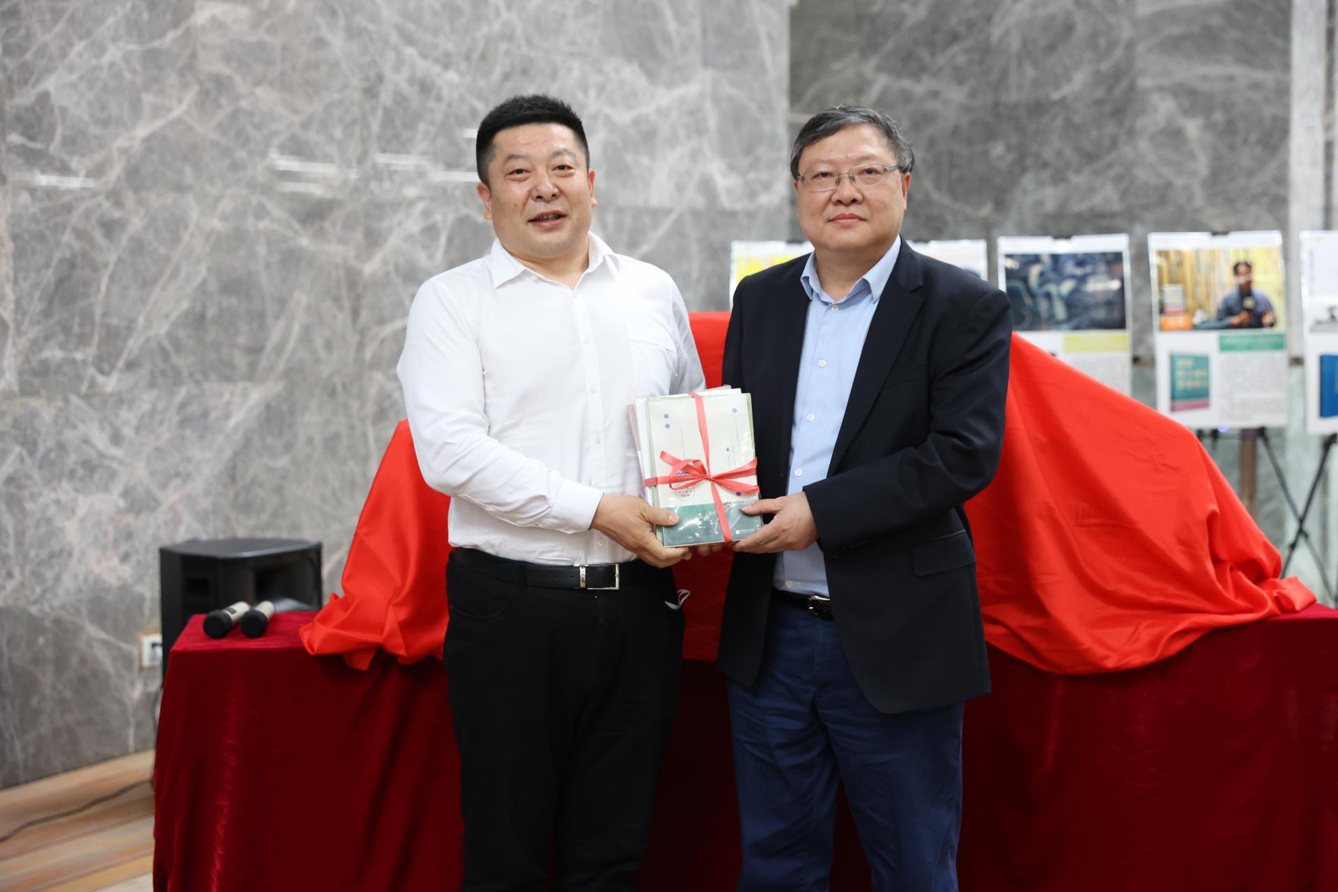 湖北新华书店董事长邱从军向学校捐赠图书,储祖旺代表学校接受捐赠。