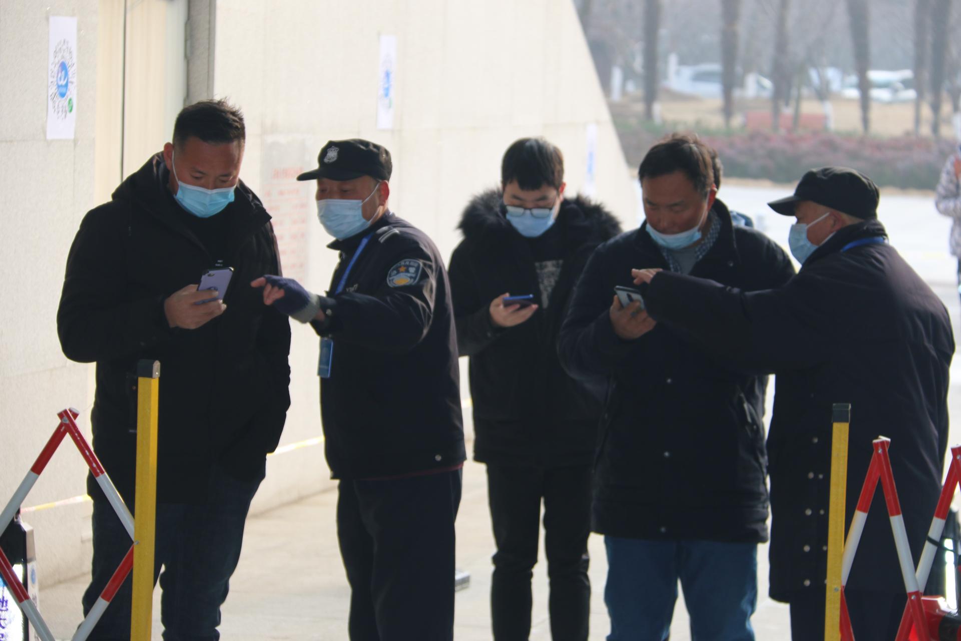 东一门安保人员检查进校车辆人员健康码、行程卡 许微 摄