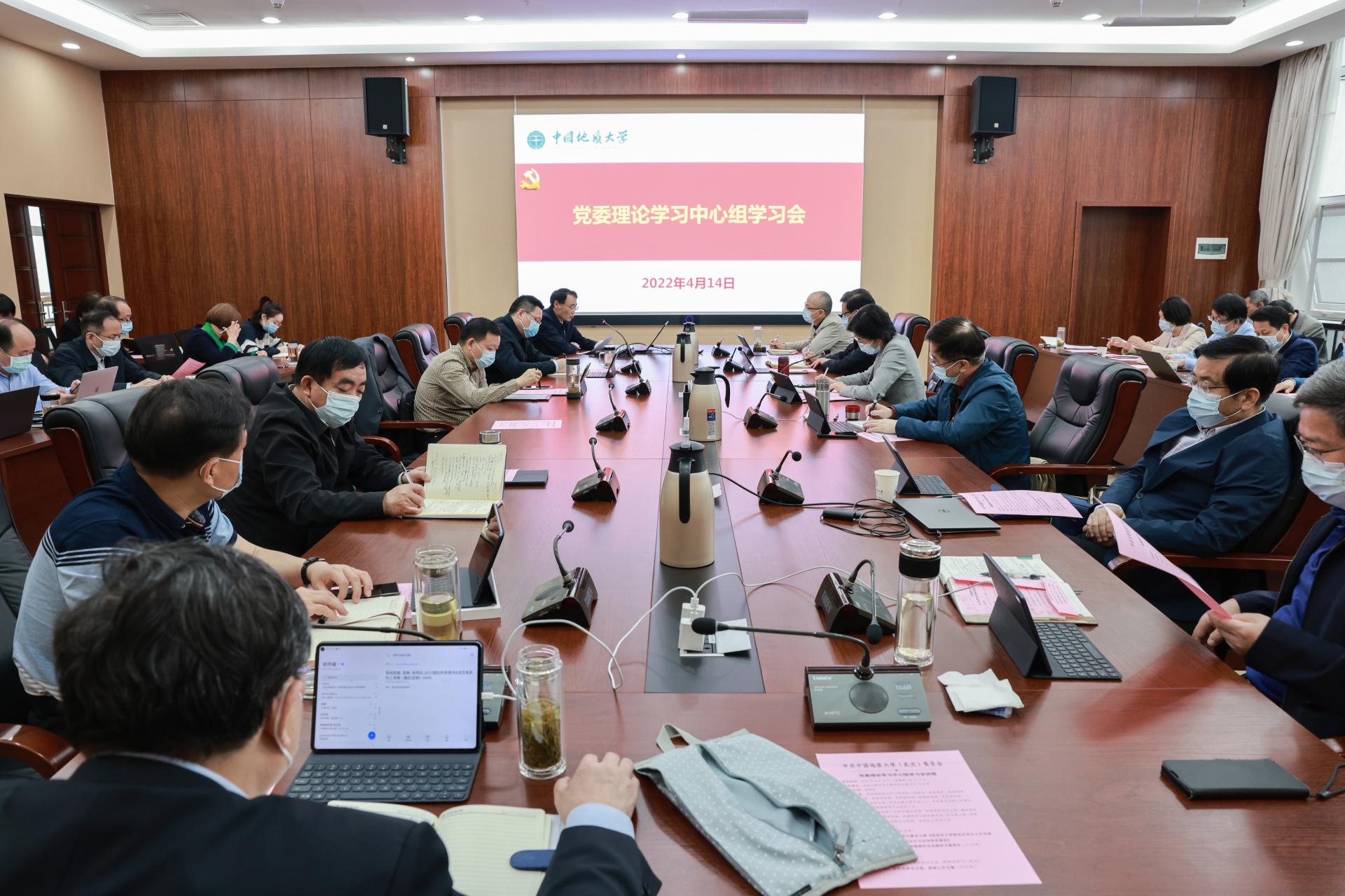 地大新闻网讯(记者许小康 学生记者池典雅)4月14日,学校在南望山校区东区教学综合楼A701会议室召开党委理论学习中心组学习会议,围绕法治建设、总体国家安全观和保密工作开展专题学习。校党委理论学习中心组成员、学校依法治校工作领导小组成员、学校保密委员会成员参加会议,相关单位负责人列席会议。校党委书记黄晓玫主持会议。