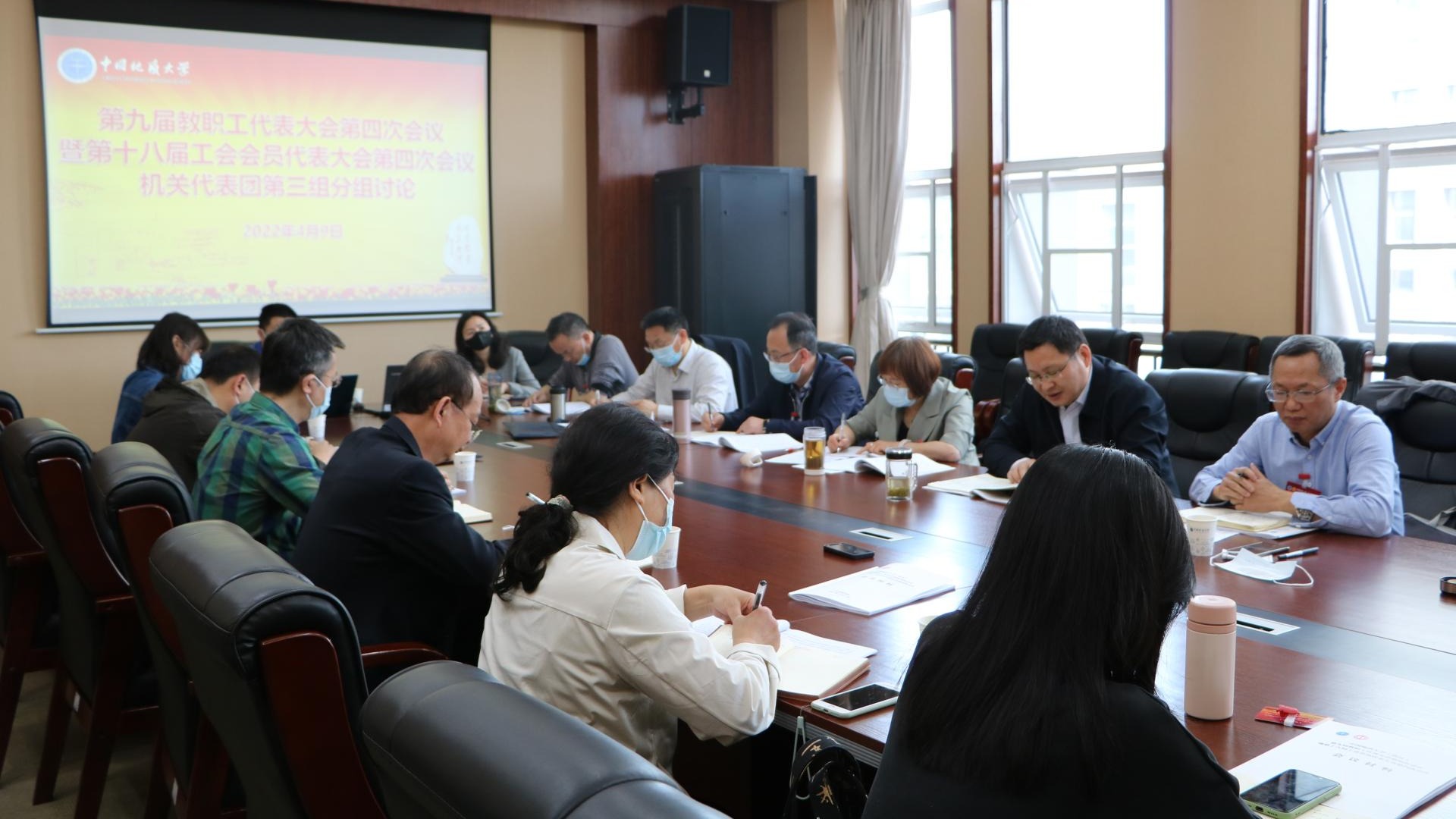 地大新闻网讯(通讯员 宋超)4月7日至4月12日,学校第九届教职工代表大会第四次会议暨第十八届工会会员代表大会第四次会议胜利召开,机关党委以此次会议为契机,推动工作重心下移,组织机关全体中层干部深入学院及直属单位代表团列席参加讨论会,认真听取师生群众意见建议,坚持问需于民,持续改进机关工作作风。
