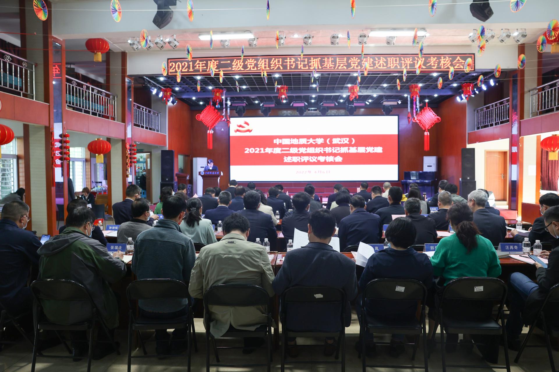地大新闻网讯(通讯员 李雨竹 摄影 雷龚鸣)4月6日,学校2021年度二级党组织书记抓基层党建述职评议考核会在南望山校区教工活动中心举行。在校校领导,党委常委,各二级党组织书记,党务部门、群团组织负责人、“两代表一委员”代表、党支部书记代表、学生代表等参加评议考核工作。教育部高校党建工作联络员谢守成到会指导,党委副书记唐辉明主持会议。