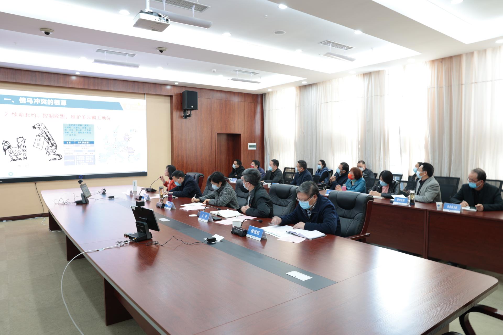 地大新闻网讯(记者江玲)3月8日,学校举行党政干部形势与政策辅导报告会,马克思主义学院副教授郭关玉应邀作《俄乌冲突:根源、影响、应对》的主题报告。在校校领导、党委常委、校长助理,各学院书记、副书记、辅导员,党务、群团部门科级以上干部参加学习。报告会采取线上线下两校区联动方式举行。