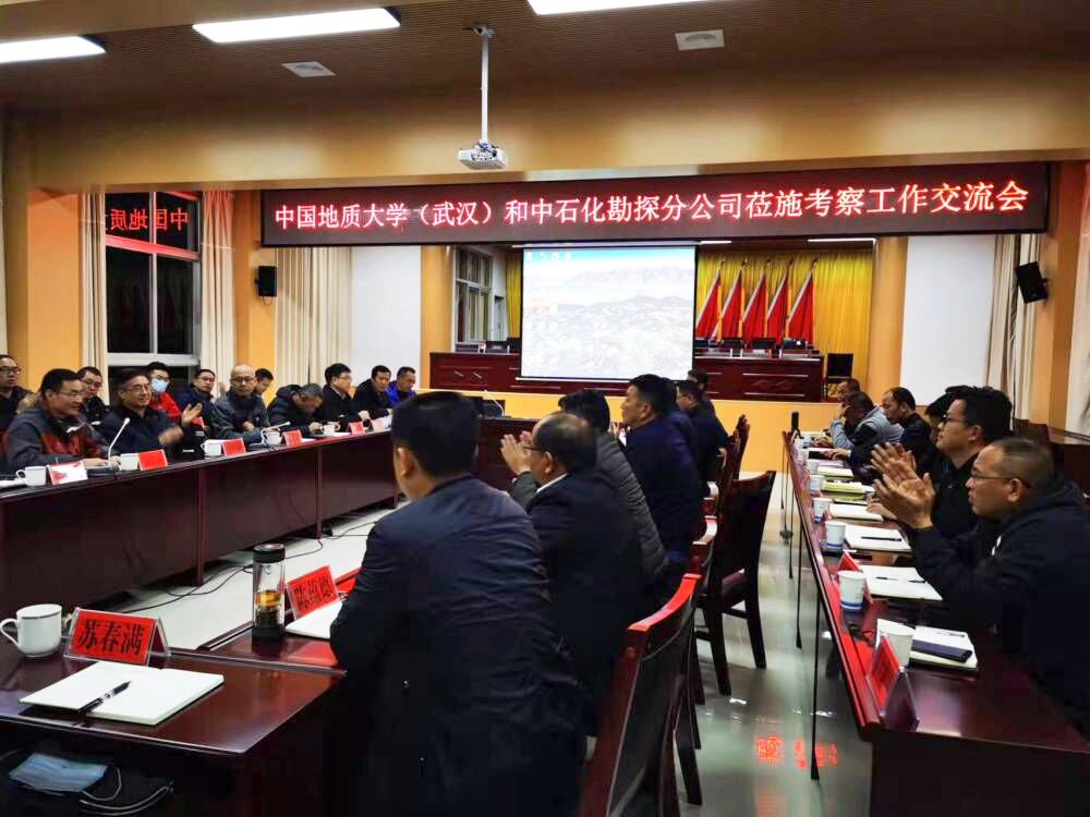 考察期间,王焰新与保山市委书记杨军,市委副书记、市长洪维智等进行了会谈。考察组重点考察了施甸县页岩气资源和地热水资源,期间还邀请中石化勘探分公司有关专家协同调查。校地双方召开工作研讨会,就我校定点帮扶、施甸地层古生物资源及页岩气勘探远景、地热资源勘查等,进行交流讨论。王焰新、保山市副市长贾德忠分别对科技帮扶工作和校地深度合作提出明确要求。此次考察调研对进一步加强校地合作,科技助力施甸乡村振兴奠定了坚实基础。