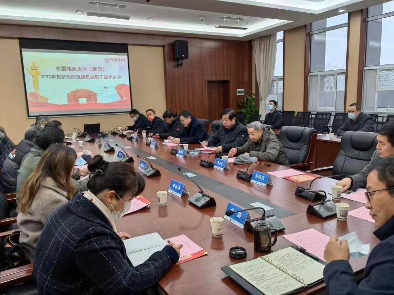 地大新闻网讯(通讯员王思予)1月14日,我校银龄教师及援派挂职干部座谈会在教学综合楼A701会议室举行。校党委副书记唐辉明、副校长刘杰,银龄教师、援派挂职干部及家属代表,相关单位负责人等参加会议。刘杰主持会议。