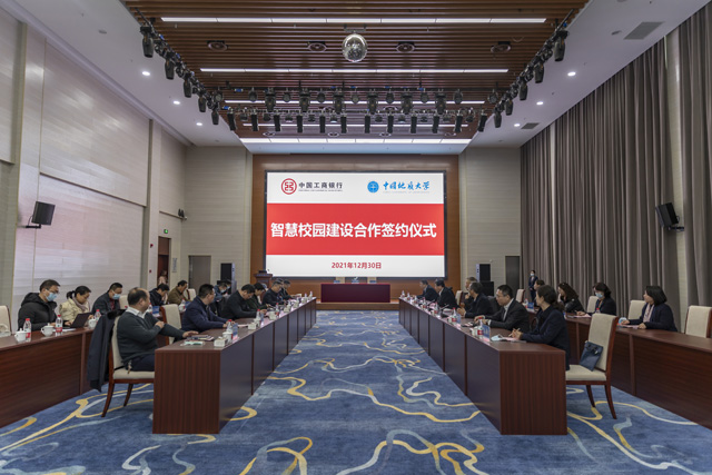 地大新闻网讯(通讯员杜碧威)2021年12月30日,我校与中国工商银行湖北分行在未来城校区举行智慧校园建设合作签约仪式。校党委书记黄晓玫,校长王焰新,副校长刘杰,中国工商银行湖北分行党委书记、行长郭伟,湖北分行副行长兼武汉分行党委书记、行长邱世杰,湖北分行副行长夏志青等出席签约仪式。