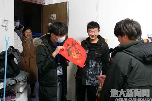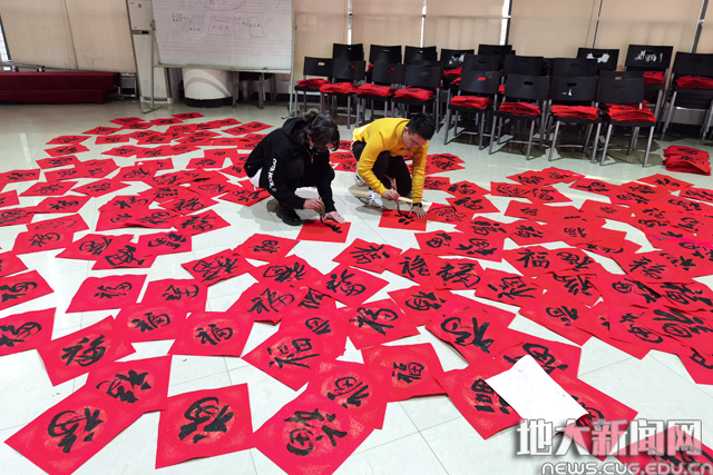 地大新闻网讯(通讯员陈文婷 王心怡 摄影白鹤飞 沈晨)“同学们新年快乐!我们给大家送‘福’来了,祝大家学业有成,福虎生威!”2021年12月31日晚,我校校院两级学生会、研究生会成员纷纷走进两校区学生宿舍、实验室、教学楼和图书馆,为同学们送上了学校书画协会连夜赶制的7000幅“福”字书法作品。