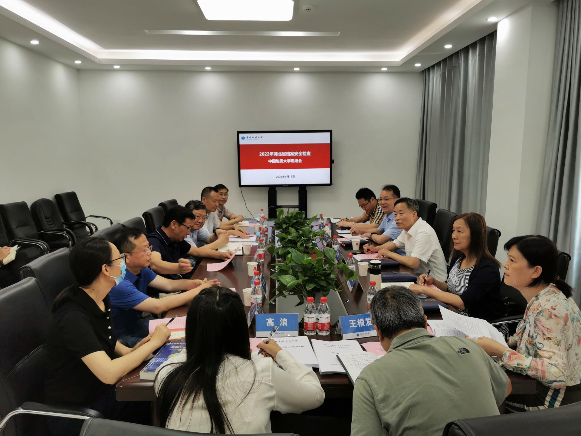 地大新闻网讯(通讯员 徐燕 朱蕾)6月13日,湖北省档案局安全检查组来校开展档案安全检查工作。检查组通过听取汇报、实地查看、座谈交流等方式,对我校档案安全工作进行全面检查。检查组组长、湖北省档案馆副馆长刘志成主持会议。