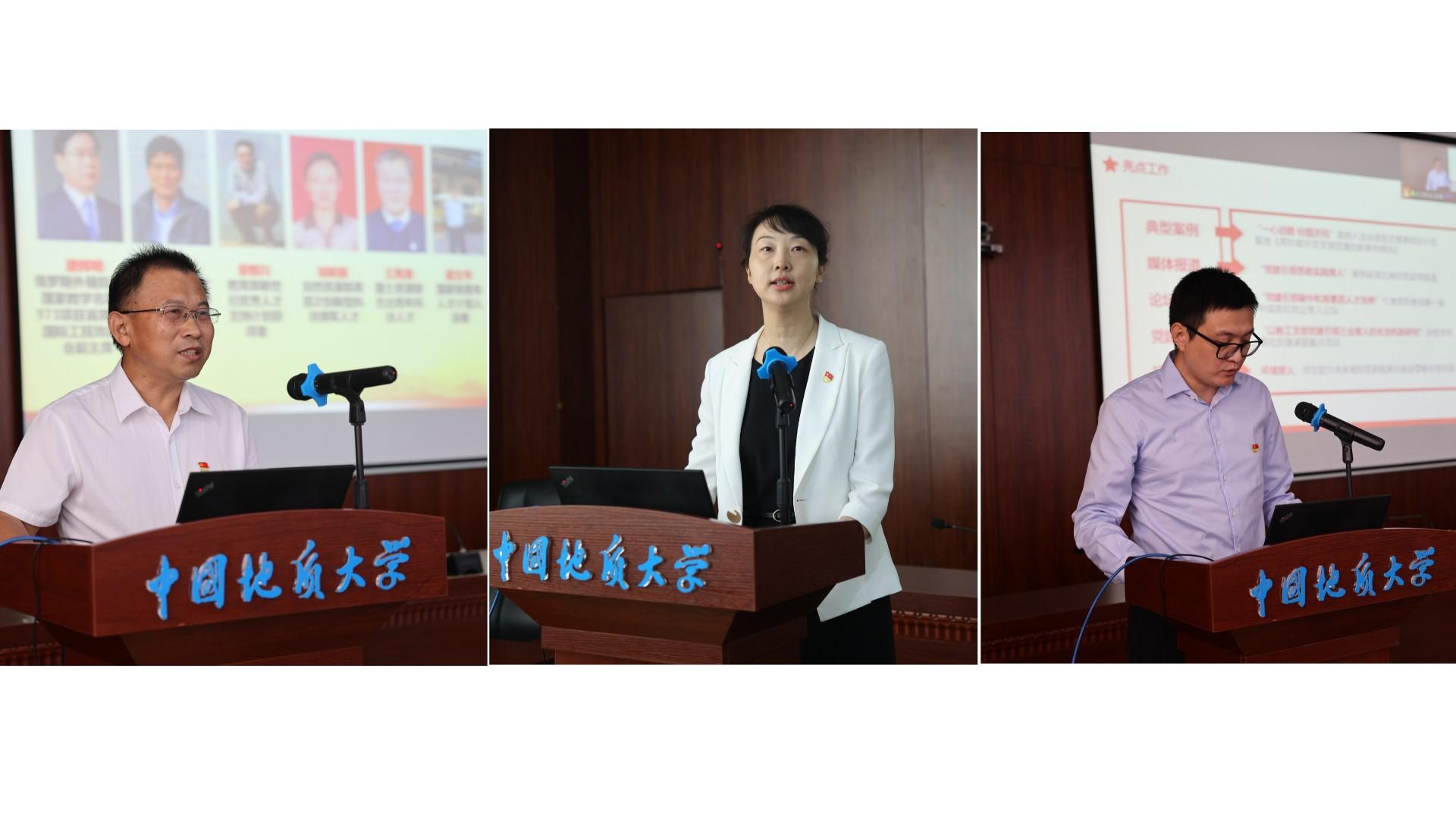 会上,我校通过国家验收的3个“全国党建工作样板支部”,进行了经验分享。首批全国党建工作“样板支部”、工程学院工程地质与岩土工程系党支部书记贾洪彪以《深入贯彻从严治党根本要求,积极落实立德树人根本任务》为题,围绕建设“七个有力”的教工党支部建设目标,介绍了工程地质与岩土工程系党支部以育人为核心,优化支部设置,根据教学科研团队设立党小组,实现党建工作与业务工作紧密结合的具体举措。