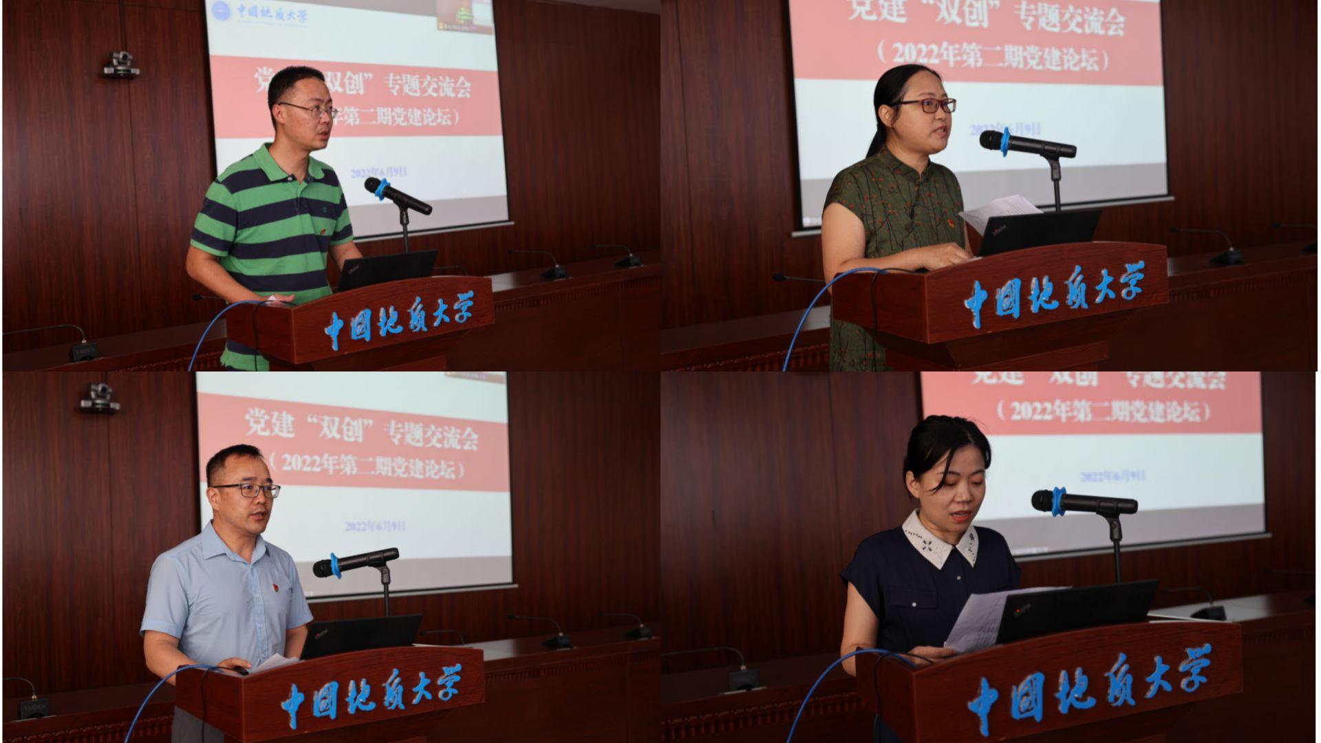 参会人员分成四组,就“如何有效加强党建品牌建设,促进支部党建工作与业务工作融合发展”进行了讨论和交流。地球物理与空间信息学院应用地球物理系党支部书记严哲、计算机学院计算机应用系党支部书记武云、珠宝学院宝石系党支部书记张鹏飞、后勤党委接待服务中心党支部书记吴华玉,分别代表所在小组进行交流成果汇报。4位党支部书记的汇报为参会人员相互学习,积极探索新时代高校教工党支部建设提供了新思路、新方法。