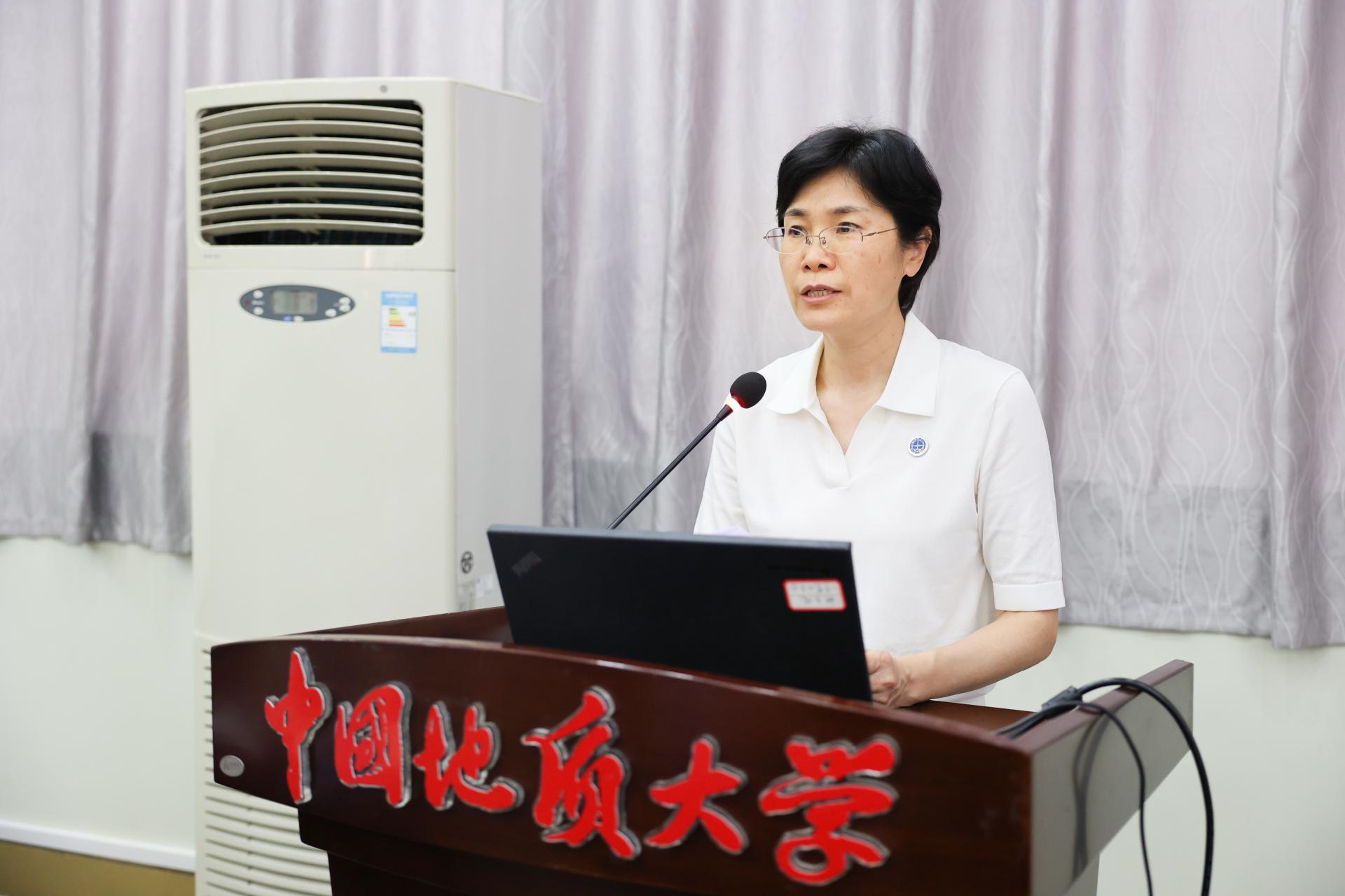 黄晓玫讲话。她指出,青科协作为青年教师开展科技工作的自发组织团体,自成立以来积极组织探讨学科前沿热点问题,促进学科交叉和科技创新,为青年人才学术交流搭台引路,为学校青年教师的成长发展起到了很好的作用。新时代赋予新使命,希望新一届青科协的委员要有胸怀祖国、科技报国的忠心,自觉传承地大红色基因,努力成长为国家靠得住、离不开的重要战略科技力量;怀有勇攀高峰、攻克难关的雄心,敢于冲破现有的知识体系,努力探索科学前沿,发现和解决新的科学问题,提出新的概念方法,开辟新的领域和方向;怀有学高为师、教书育人的初心,以“全国最美教师”殷鸿福院士等优秀学者和老师为榜样,做学生为学、为事、为人的示范。同时积极承担社会责任,发挥专业特长,展现专业水平,向社会公众普及科学知识、提升学校的社会美誉度和知名度。