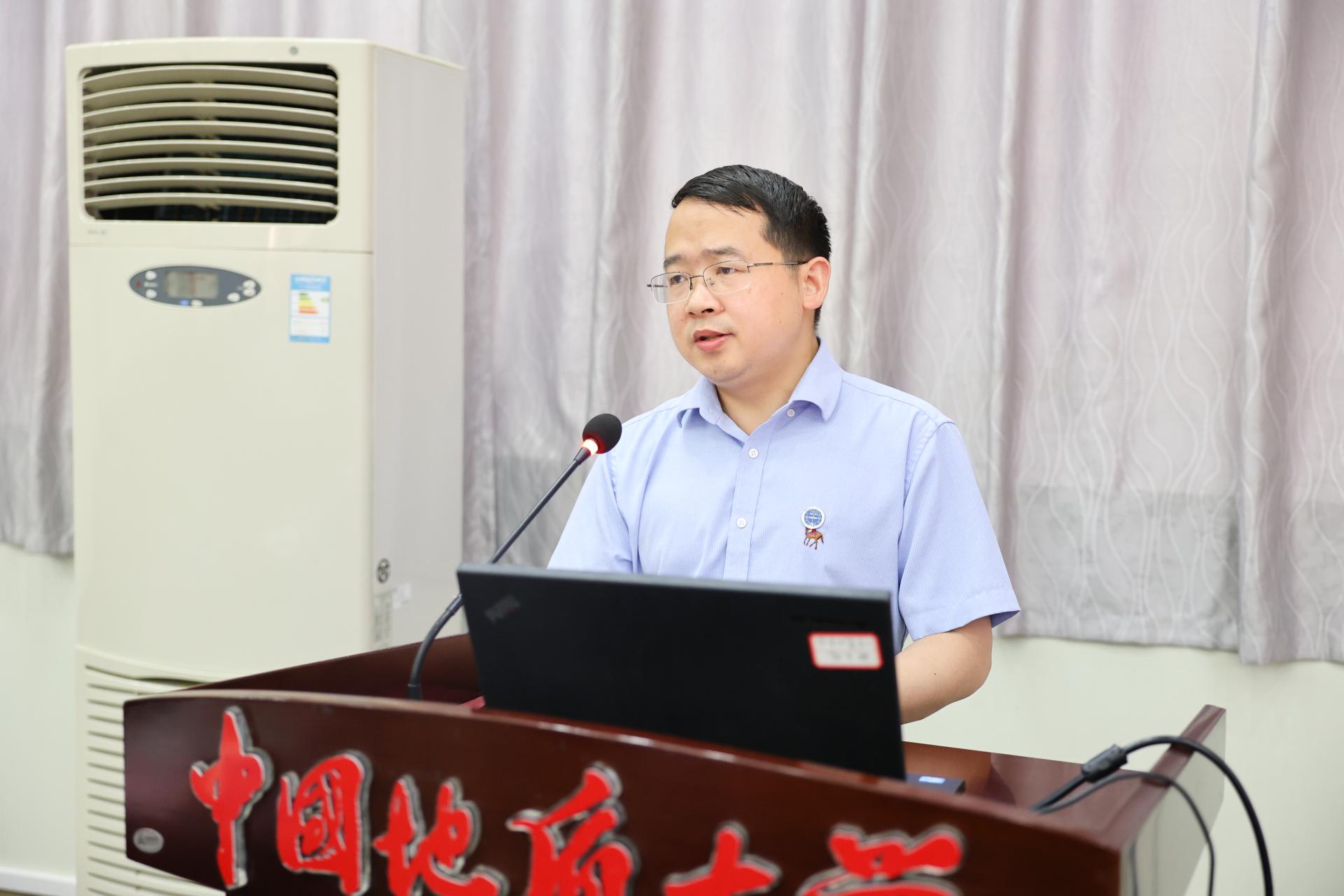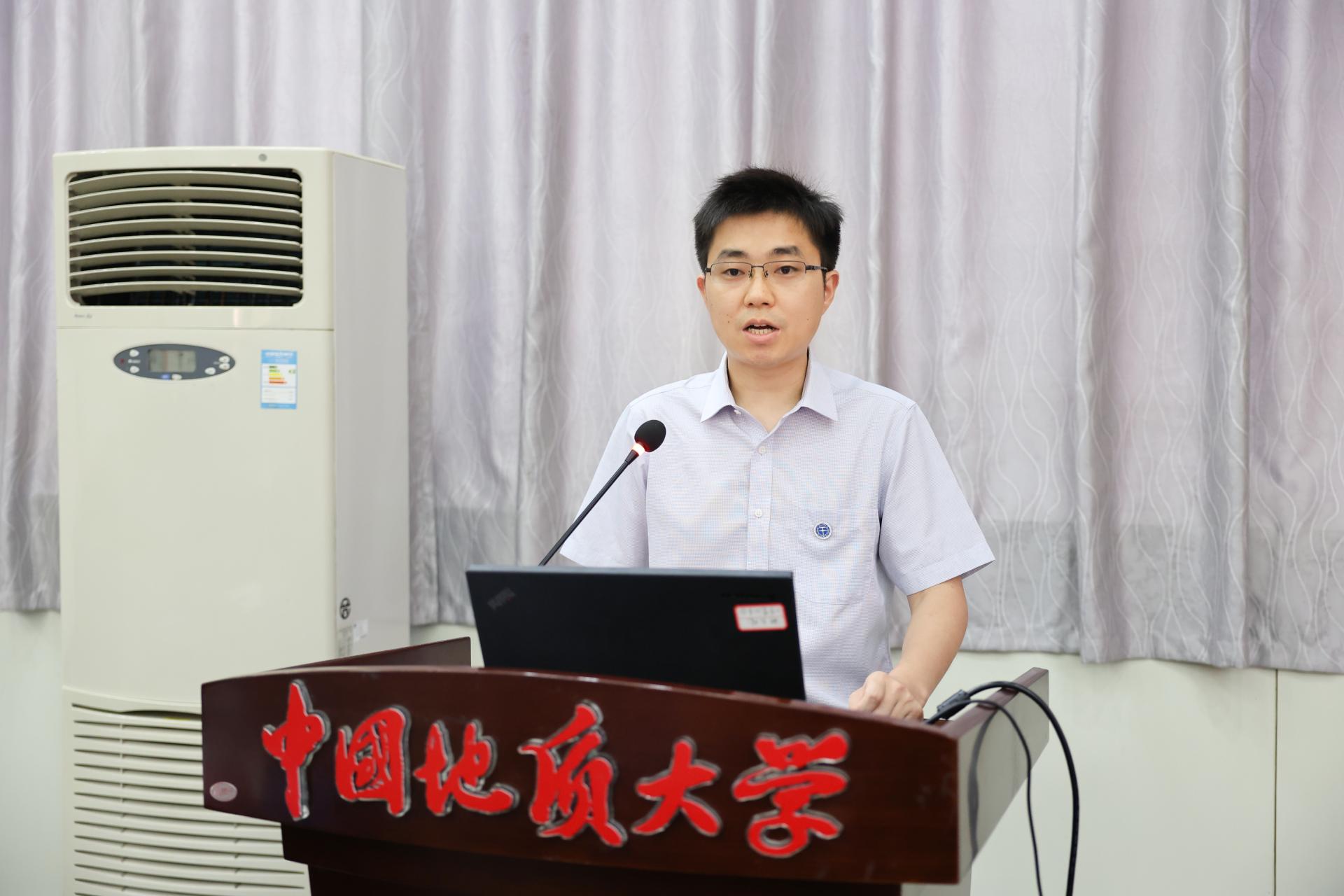 青科协第二届委员会秘书长李长冬教授发言,他回顾了上一届青科协在学术交流和项目合作方面取得的成绩,并勉励新一届青科协委员发挥组织优势,不断浓厚学术氛围,持续推动自主创新,主动助力科学普及,充分发挥地大青年科技工作者应有的责任担当。