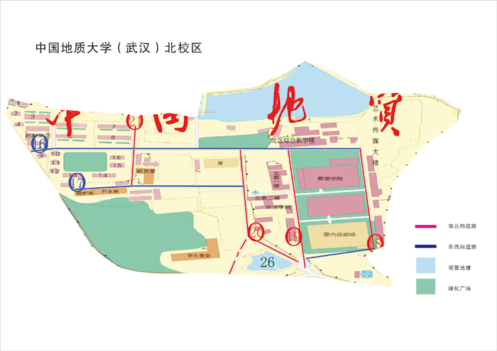 编号(6)校北门——地大东门(南北向 原名:抚山路)