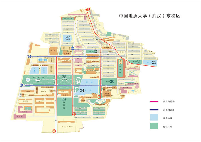 全校共计22条道路。东校区7条、西校区9条、北校区6条(见附图标识)。