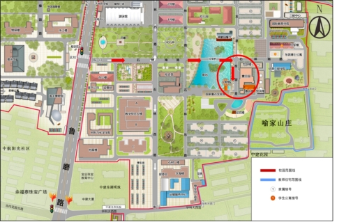 进校路线:东一门→石林南路→桂园路→迎宾楼