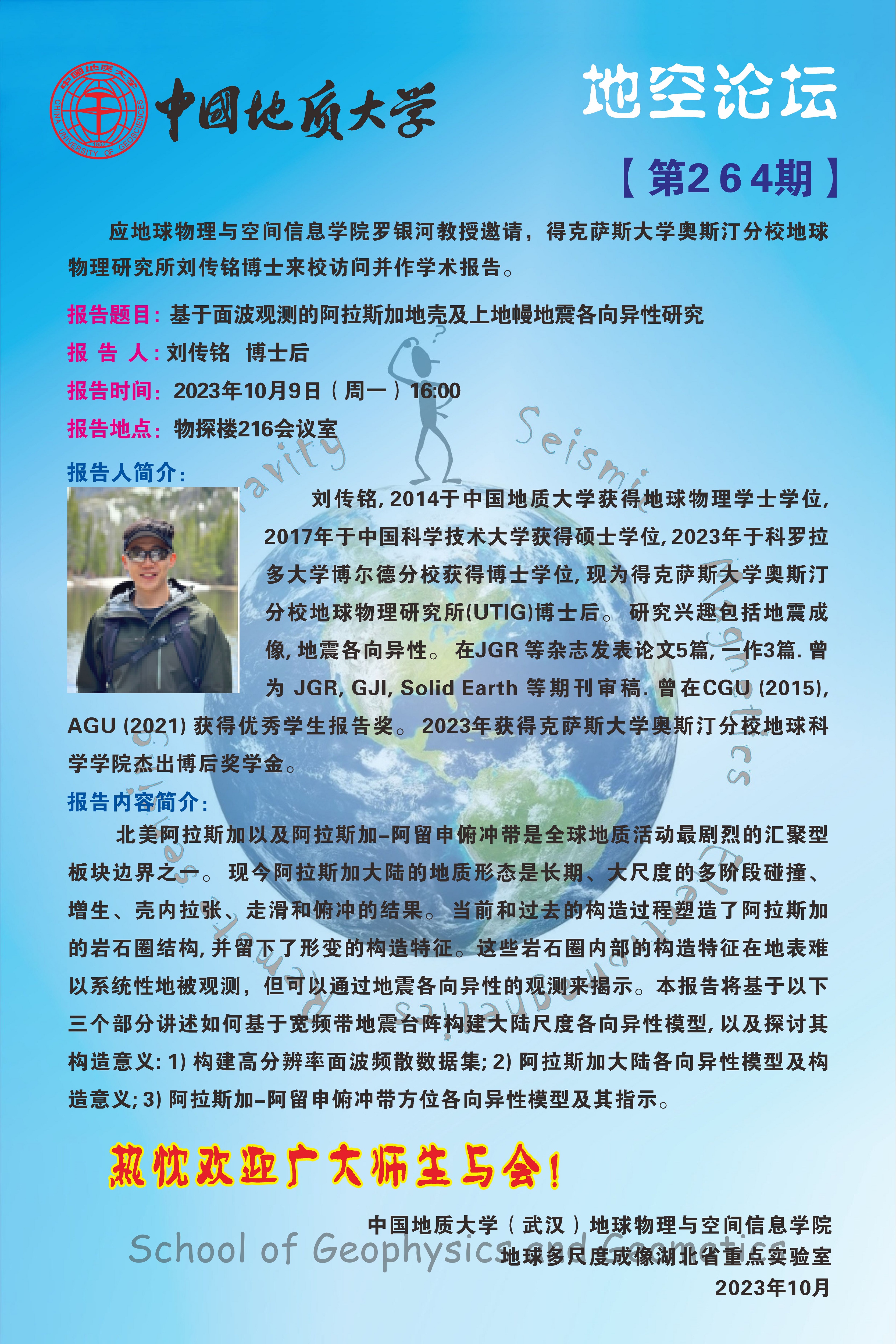 【10月9日】地空论坛:基于面波观测的阿拉斯加地壳及上地幔地震各向异性研究