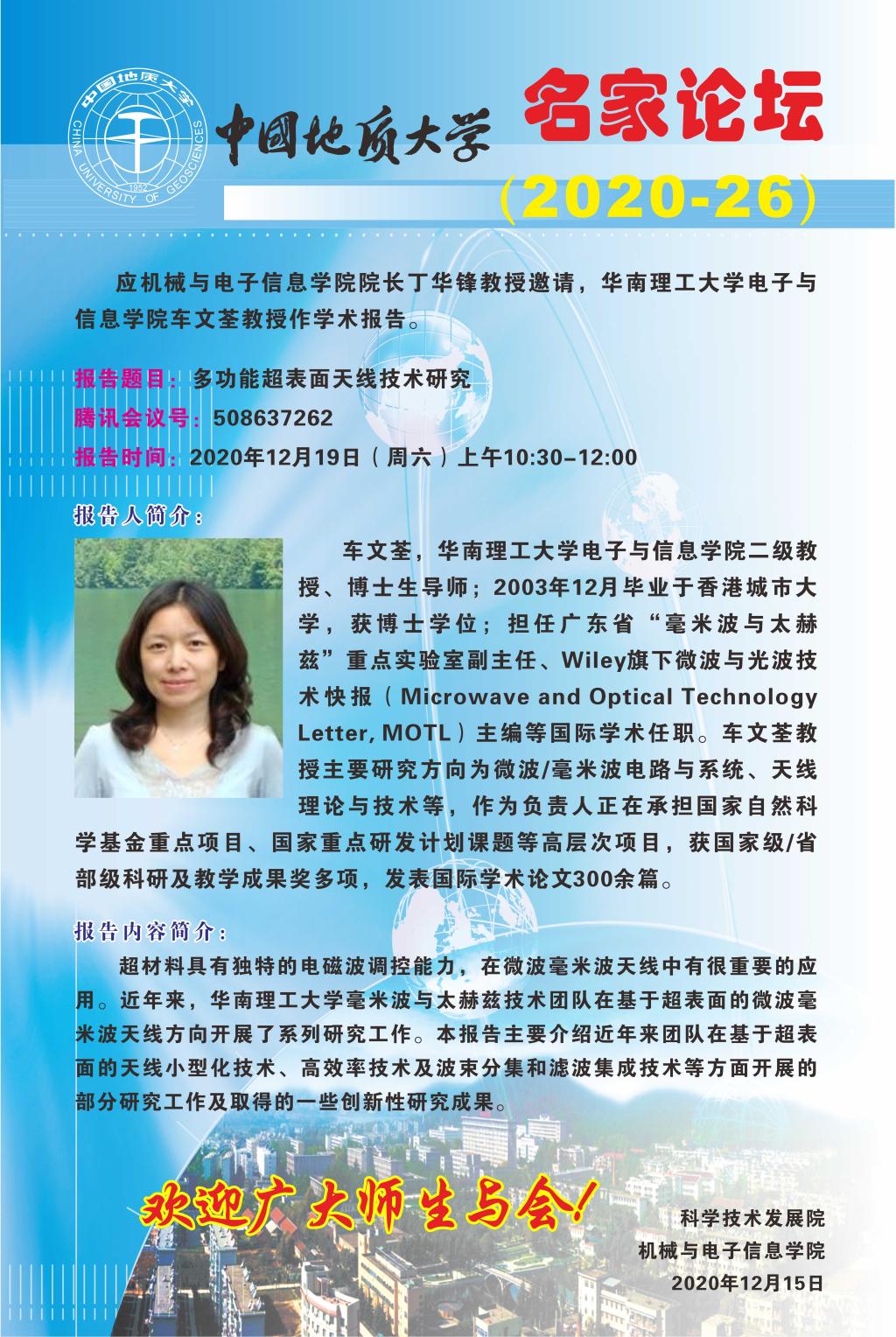 【12月19日】名家论坛:华南理工大学电子与信息学院车文荃教授学术报告