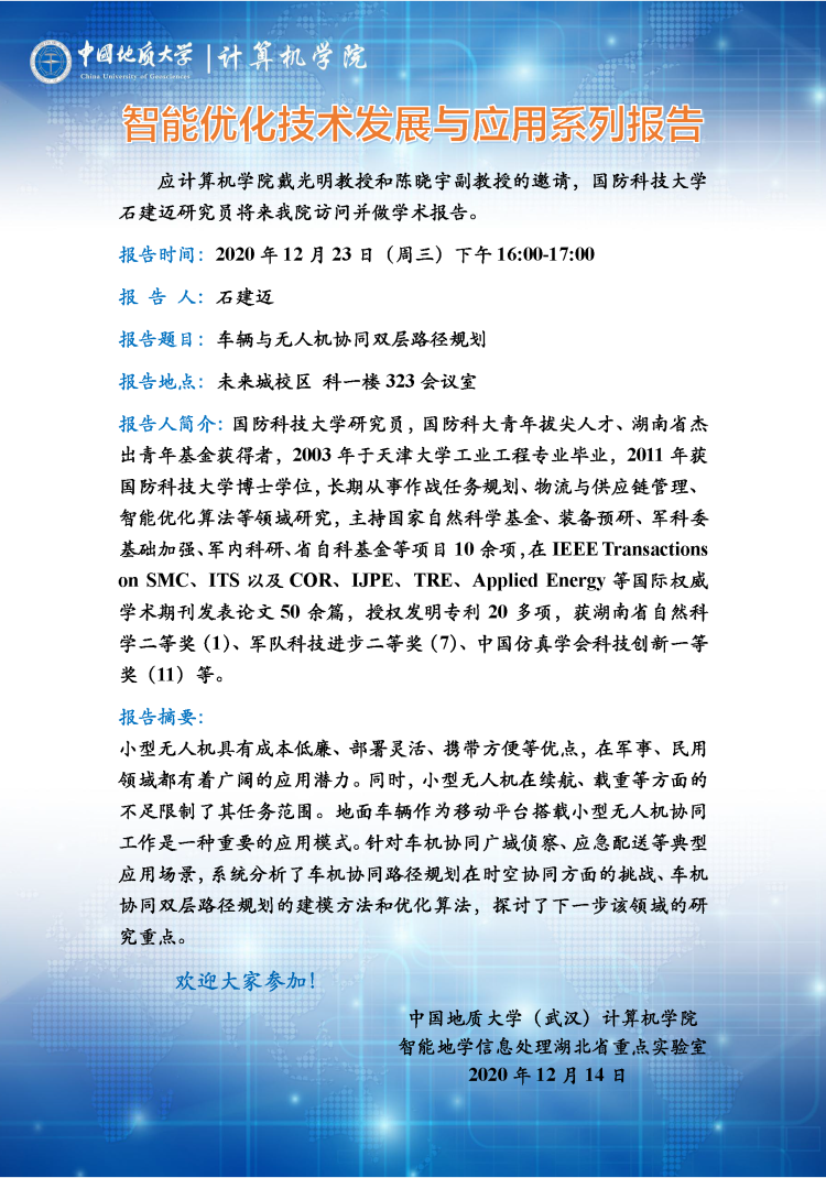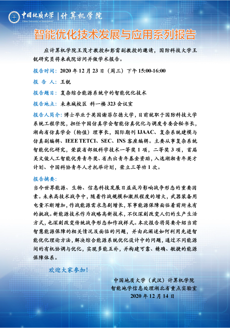 【12月23日】智能优化技术发展与应用系列报告