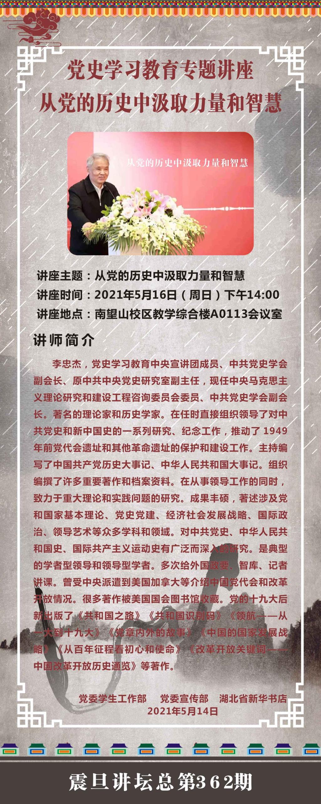 【5月16日】党史学习教育专题讲座:从党的历史中汲取力量和智慧