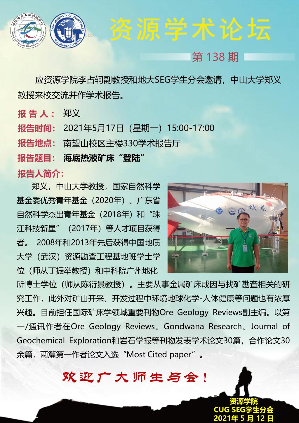 【5月17日】资源学术论坛:中山大学郑义教授学术报告