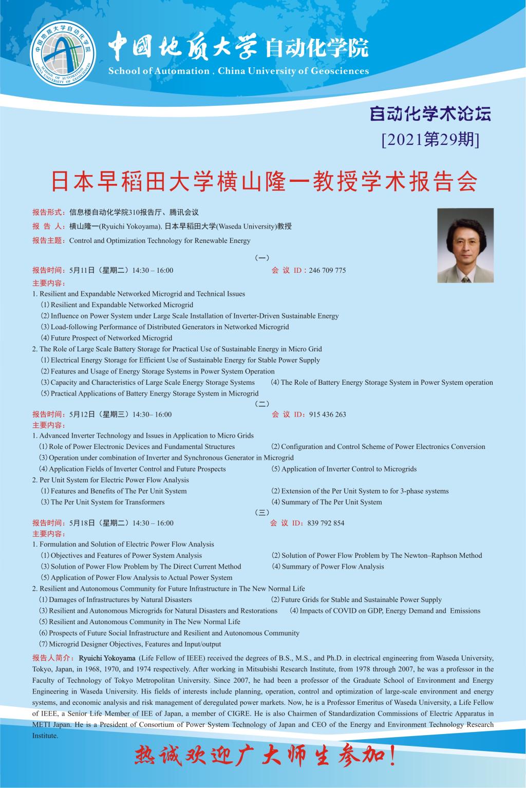 【5月11-18日】自动化学术论坛:日本早稻田大学横山隆一教授学术报告