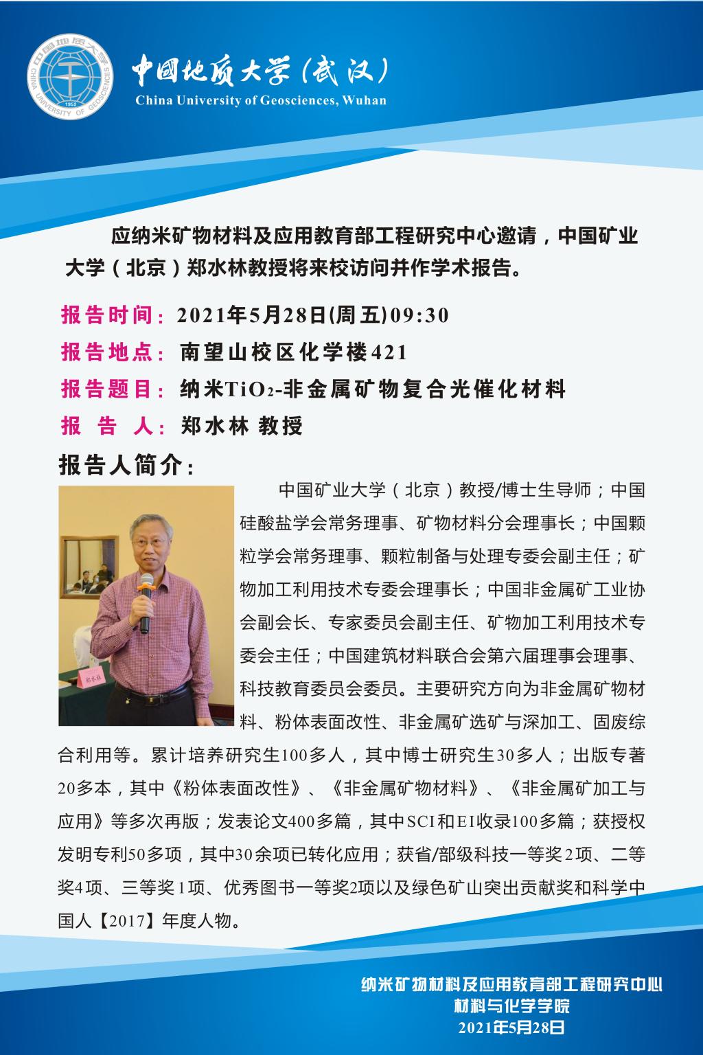 【5月28日】材化学术论坛:中国矿业大学(北京)郑水林教授学术报告