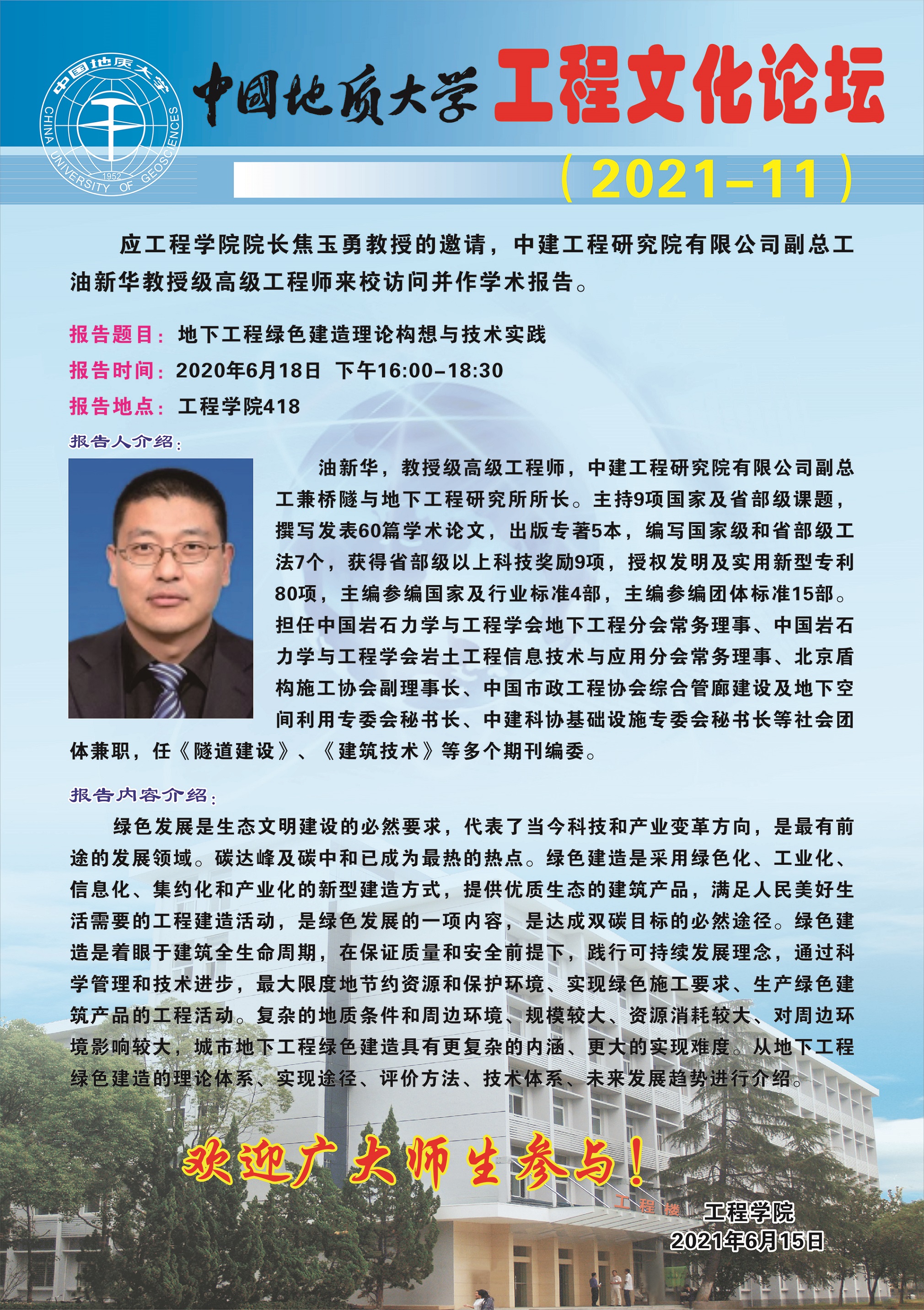 【6月18日】工程文化论坛:中建工程研究院有限公司副总工油新华教授级总工程师学术报告