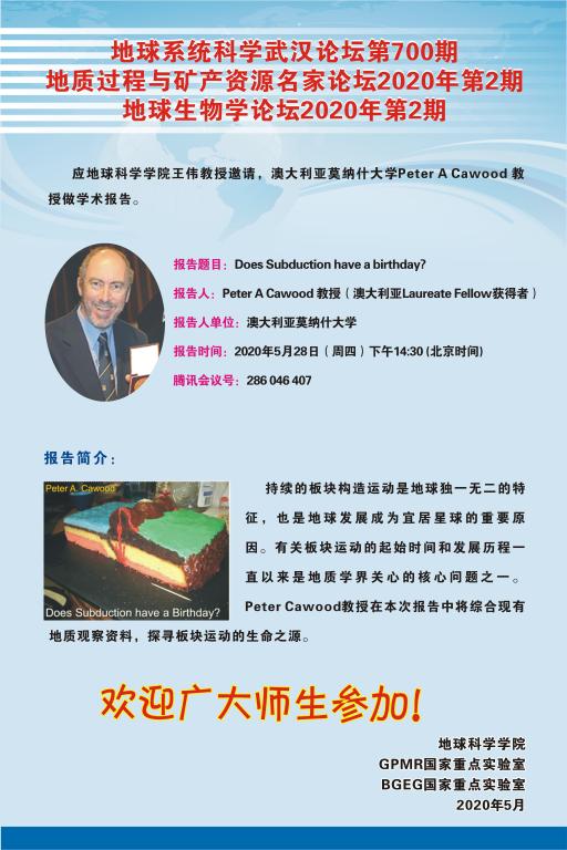 【5月28日】地球系统科学武汉论坛:澳大利亚莫纳什大学Peter A Cawood教授学术报告