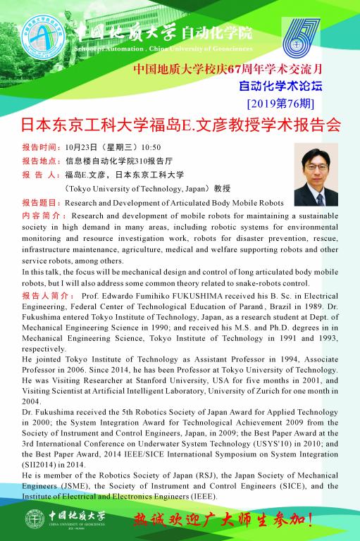 [10月23日]自动化学术论坛:日本东京工科大学福岛E.文彦教授学术报告