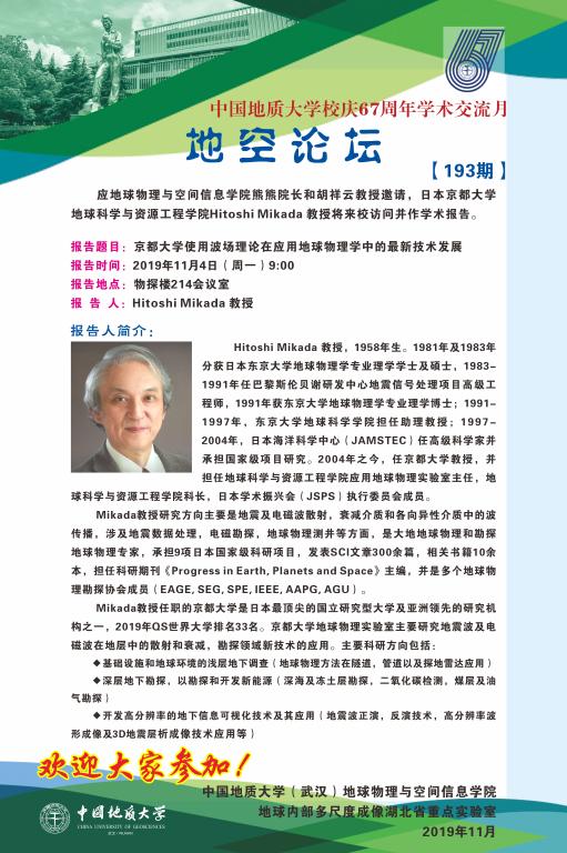 [11月4日]地空论坛:日本京都大学地球科学与资源工程学院Hitoshi Mikada教授学术报告