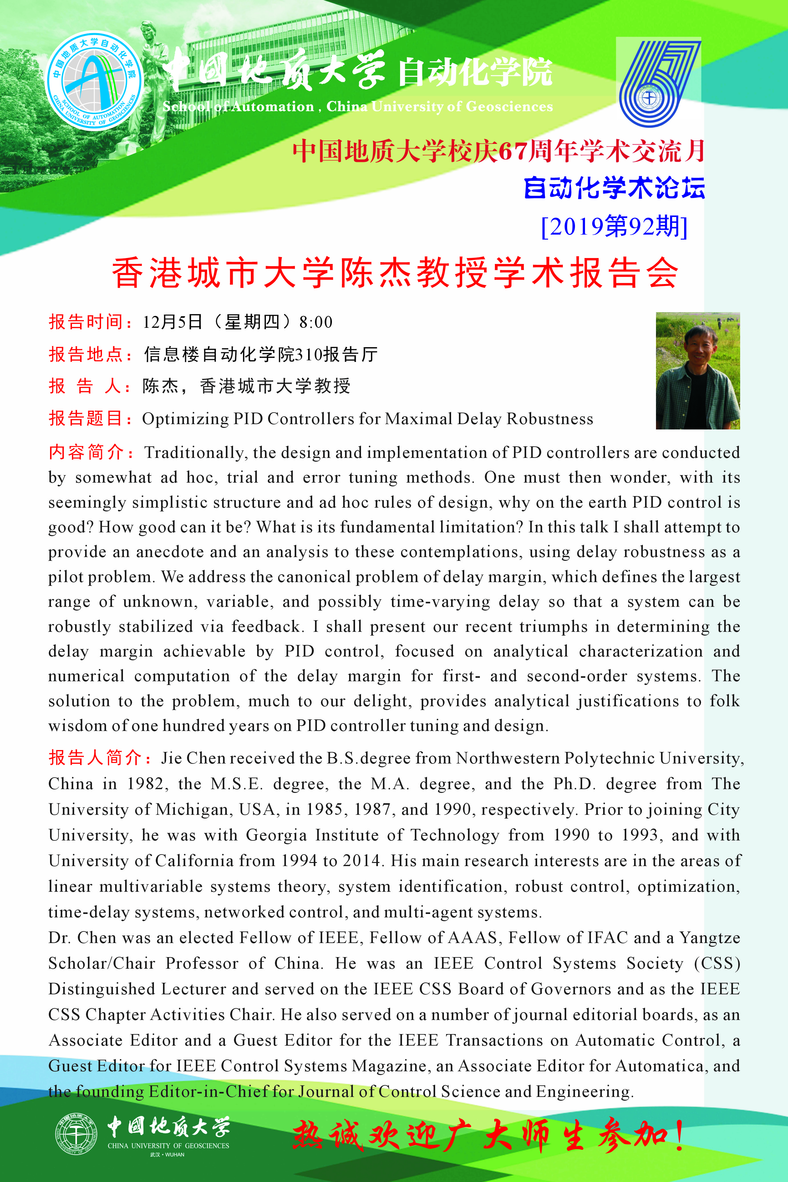 [12月5日]自动化学术论坛:香港城市大学陈杰教授学术报告