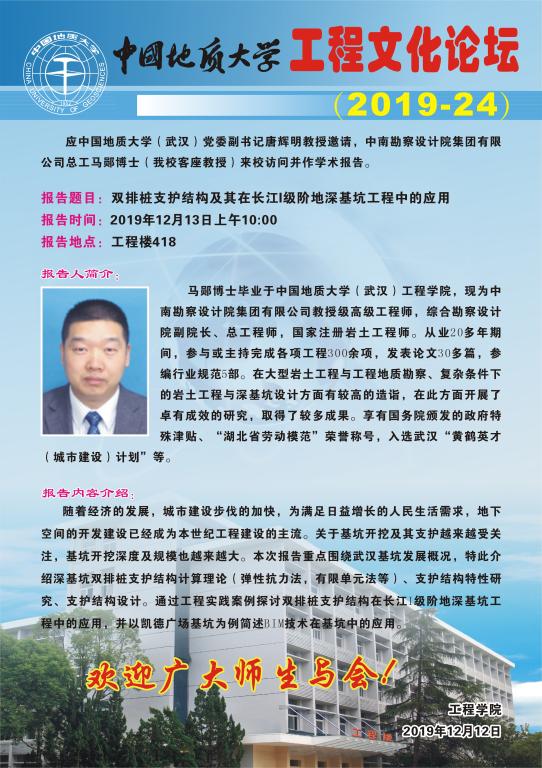[12月13日]工程文化论坛:中南勘察设计院集团有限公司总工马郧博士来校访问并作学术报告