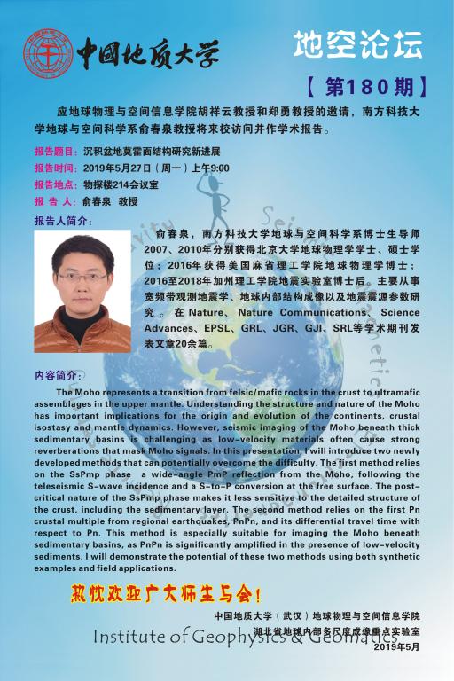[5月27日]地空论坛:南方科技大学地球与空间科学系俞春泉教授学术报告